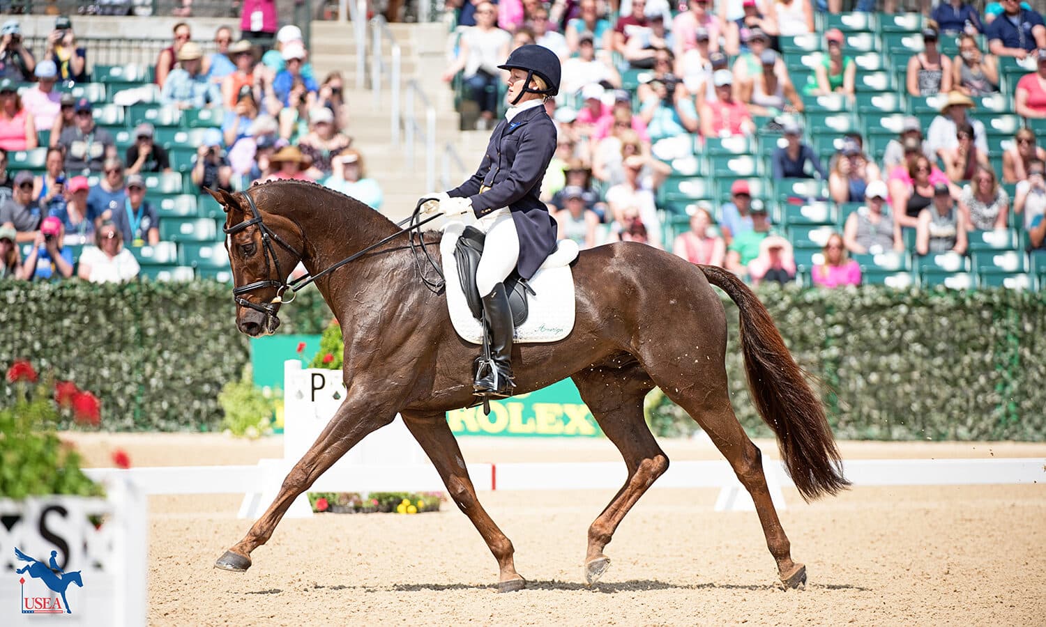 While ASTM/SEI approved helmets have been required for all phases and while mounted at all times at USEF/USEA recognized events since 2011, the FEI rules superseded the USEF Rules for Eventing allowing riders to wear top hats in dressage. The wearing of top hats has been diminishing in use over the years but was still seen at major events especially among European riders.