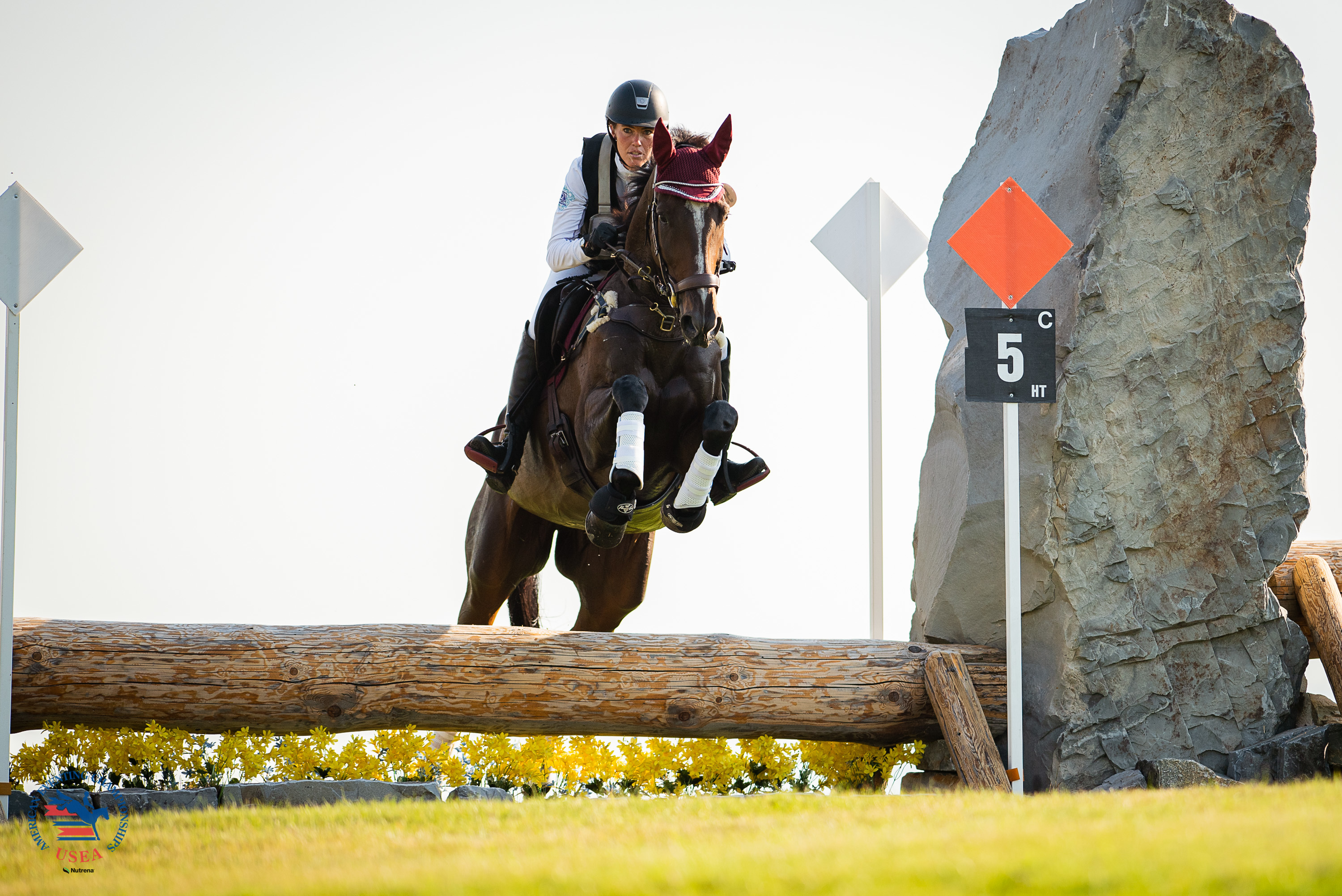 Ghislaine Homan-Taylor aboard the 7-year-old Off-Track Thoroughbred Mt. Whitney (Penitent Man x Taitt Hill) gained a few places today, catapulting them to the lead after navigating a gnarly cross-country course. Despite this being his first season going preliminary, Homan-Taylor was ecstatic over his performance.