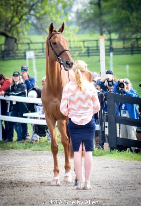 Fifty-five horses we’re presented to the Ground Jury this morning on the final day of competition at the 2016 Rolex Kentucky Three-Day Event. Unfortunately, one combination, Holly Payne Carvella and Never Outfoxed were sent to the hold box and were not accepted when re-presented. This pair was 19th after cross-county with no jump penalties.