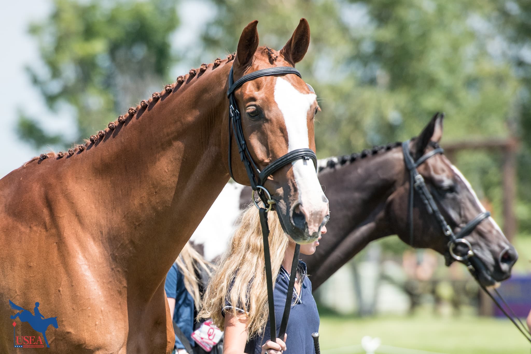 All but one of the 54 horses presented to the Ground Jury of Wayne Quarles (USA), Nikki Hebert (GB), and Helen Christie (NZL) this afternoon at the 2017 Adequan/FEI North American Junior & Young Rider Championships (NAJYRC) will continue to compete after the first horse inspection.