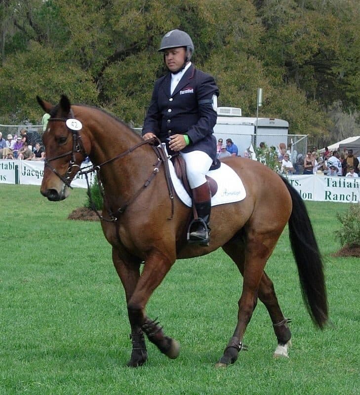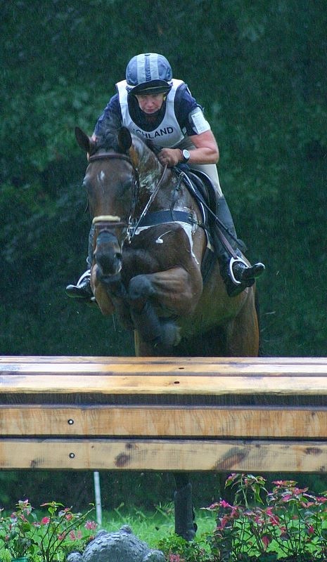Karen O’Connor (who recently celebrated the big 5-0) paired with Becky Broussard’s 12-year-old Thoroughbred Allstar, to clinch the win in Section B, taking over the lead from Leslie Law on Fleeceworks Mystere du Val. Wait, Mystere du Val? Wasn’t that the nifty chestnut gelding that Stuart Black rode? Yes, the very same! Turns out this (rather tall) gelding is a Selle Francais/Arabian. Not something you see everyday!