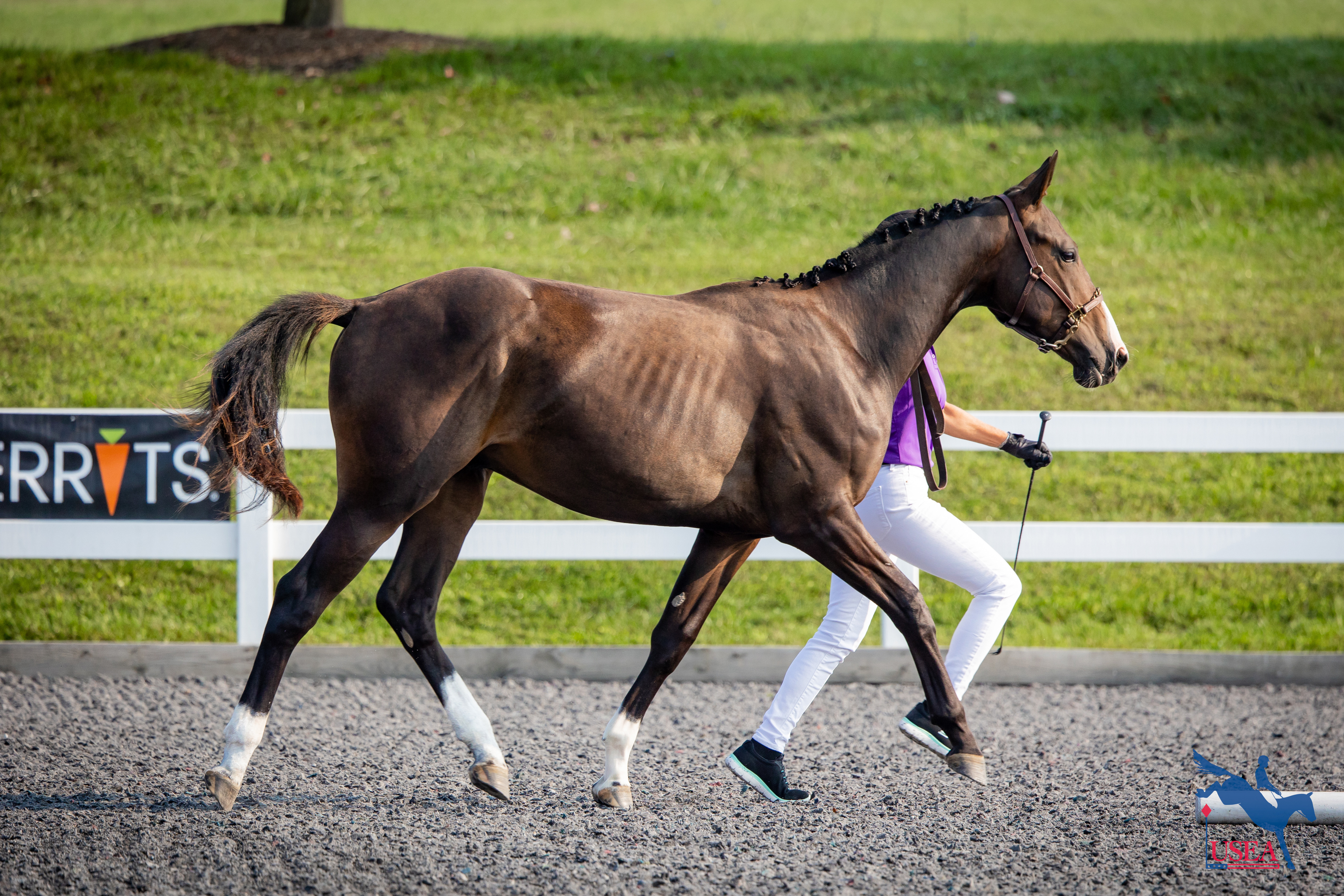 Second place in the Yearling Colts and Gelding division went to Kaitlin Hartford's Tempus Fugit EZ (Tempest WT x Von Africa LF), a Danish Warmblood colt. Tempus Fugit EZ scored 82.8 and earned third place overall for yearlings.