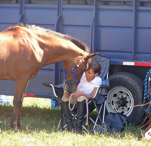 Spunky and Kelly snuggling by the trailer in August 2008 at a hunter pace held by Equilibrium Horse Center. Photo Courtesy of Angie Leihy