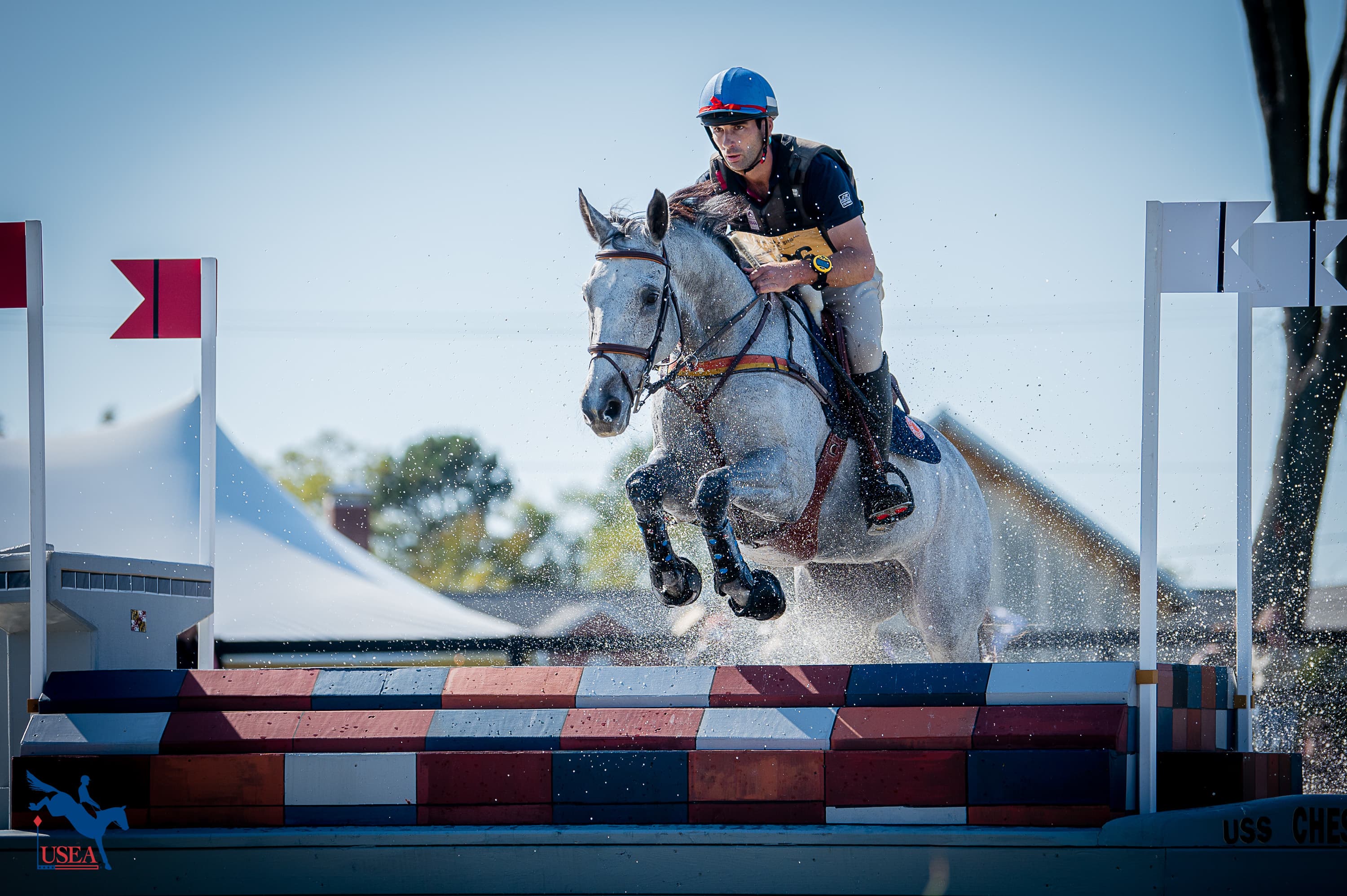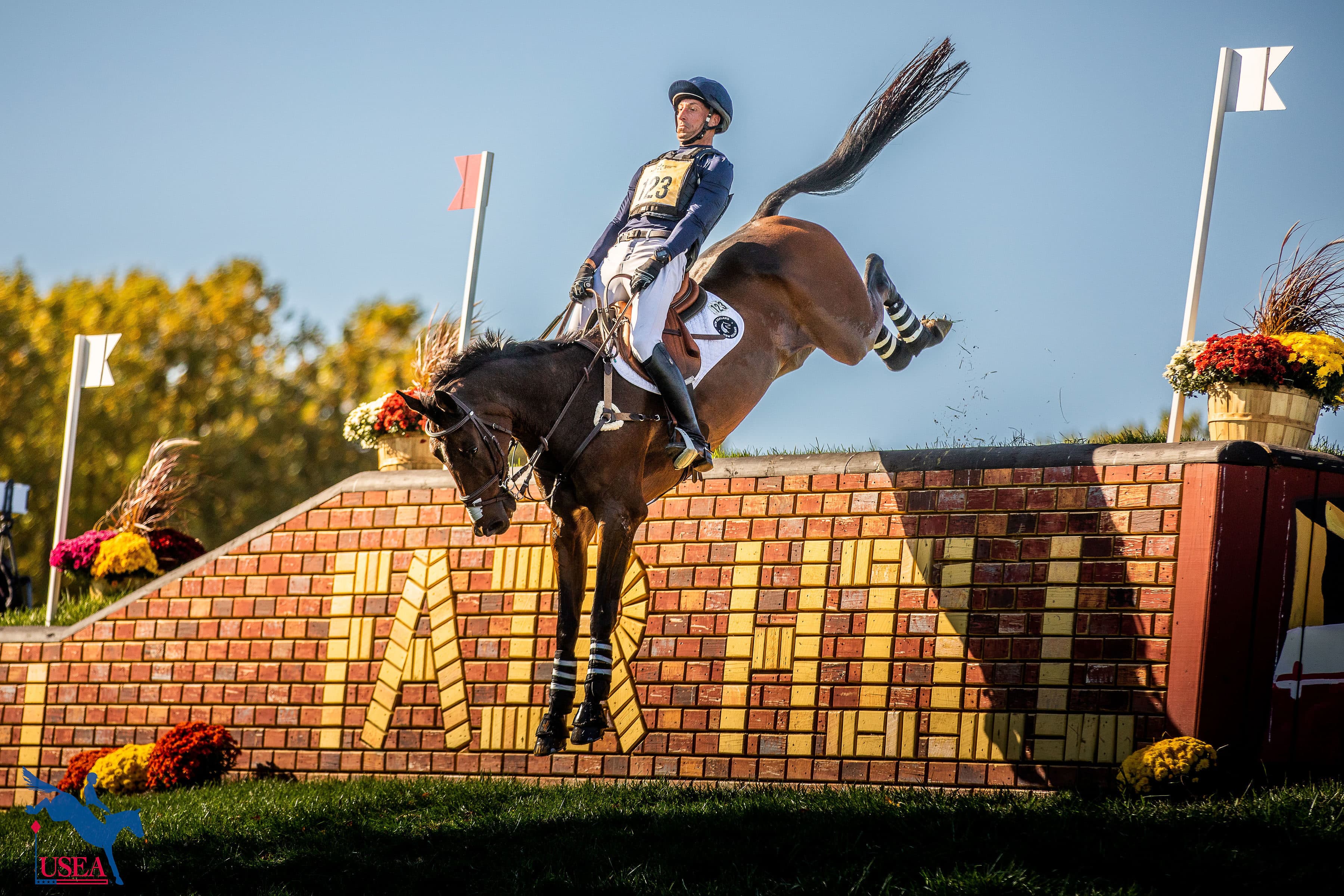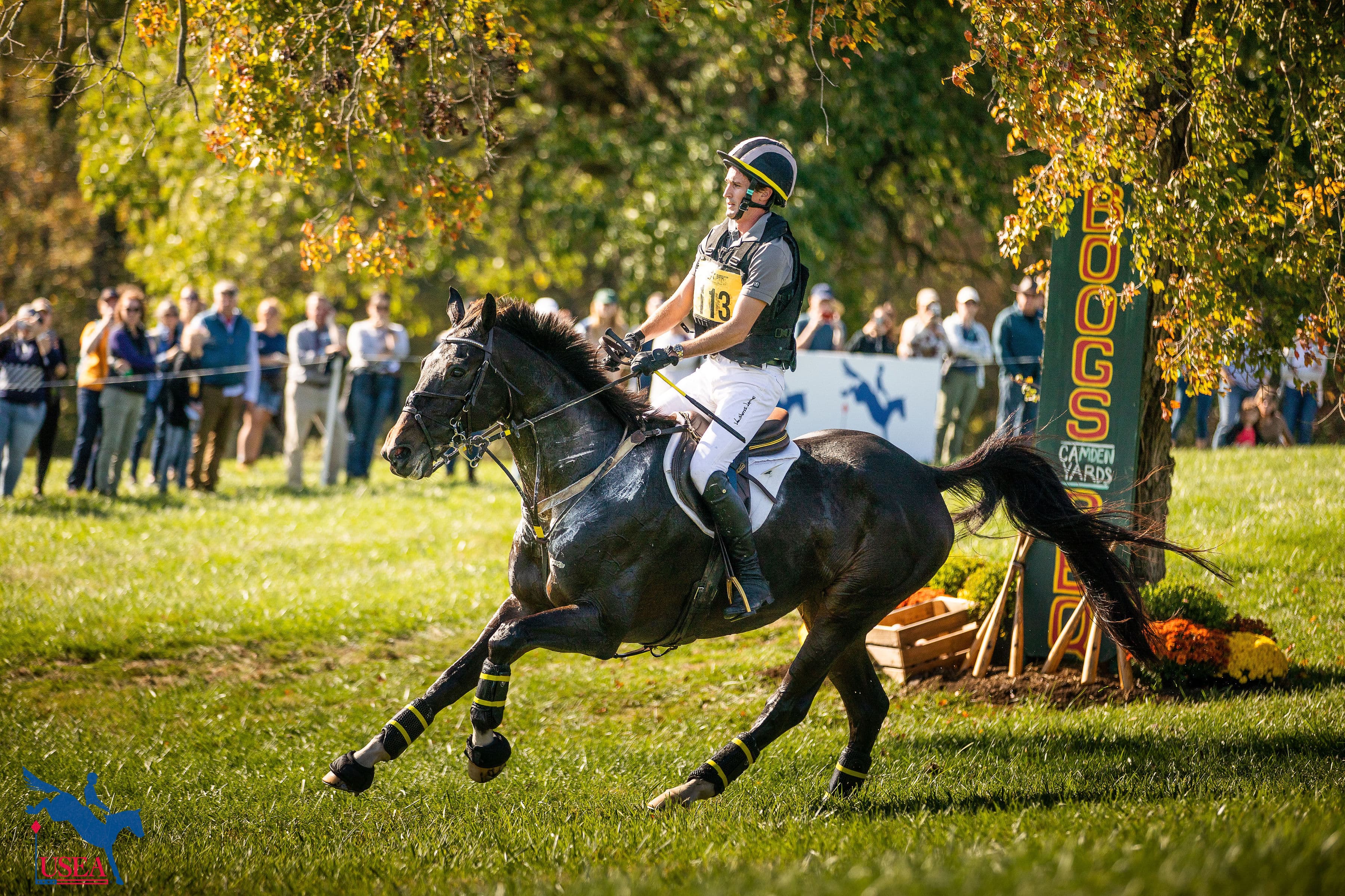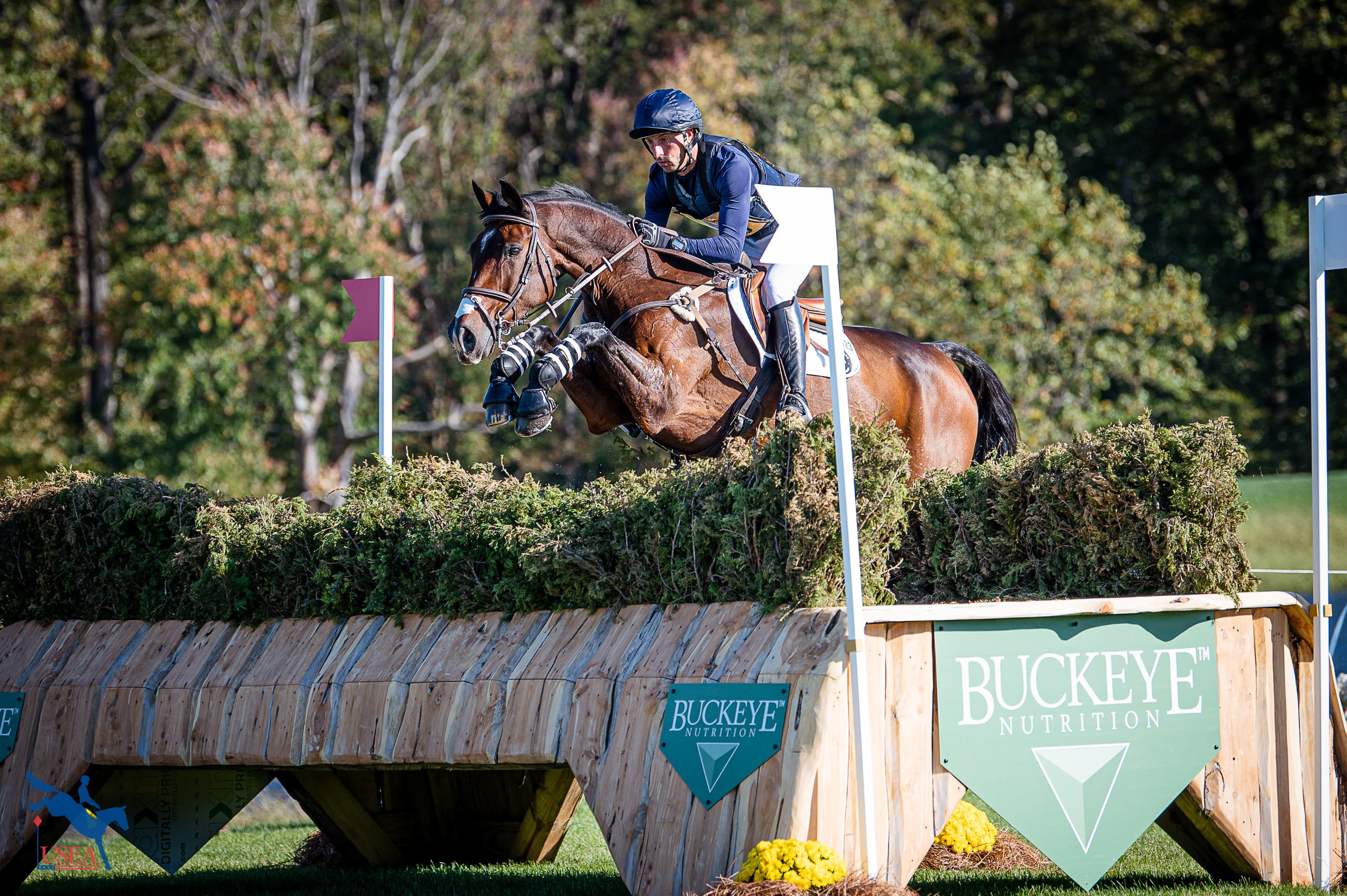 Three five-star first-time horses make up the top three of the CCI5*-L at the Maryland 5 Star at Fair Hill after contesting Ian Stark’s cross-country course on Saturday. It was a successful day with only two pairs retiring and the remaining 22 duos making it home safely. Of the field, 13 pairs made the optimum time of 11 minutes and 30 seconds with only three of the top ten having time penalties. World Number One Tim Price (NZL) moved up from second place to first after issuing a double-clear round aboard Jean-Louis Stauffer’s 10-year-old Selle Français gelding Coup de Cœur Dudevin (Top Gun Semilly x Tiebreak Combehory). They go into the final phase of competition on a score of 27.4, only two points ahead of the second-place pair.