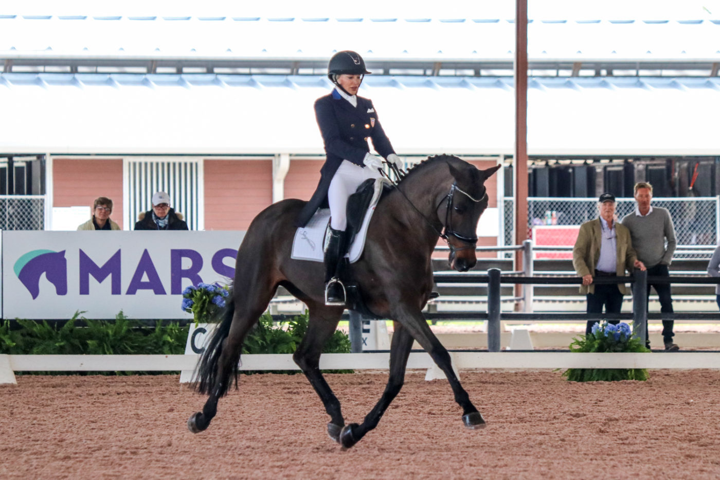 “A horse can be both correct and flashy. In the modern sport horse this quality movement comes from solid conformation, correct gaits, and good training. A prime example [of both a correct mover and flashy mover] would be the Oldenburg mare, RF Scandalous.” RF Scandalous (Carry Gold x Richardia) is a 15-year-old Oldenburg mare ridden by Marilyn Little, owned by Raylyn Farms, and bred by Horst Buhrmann. The Oldenburg mare has earned top finishes in five-star events including a 4th place finish at Luhmuhlen CCI5*-L in 2017 and a 3rd place finish at the Land Rover Kentucky Three-Day Event in 2018. She also has over 18 wins to her USEA record which includes the individual gold medal at the 2015 Pan American Games.