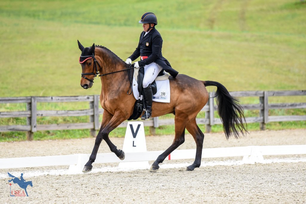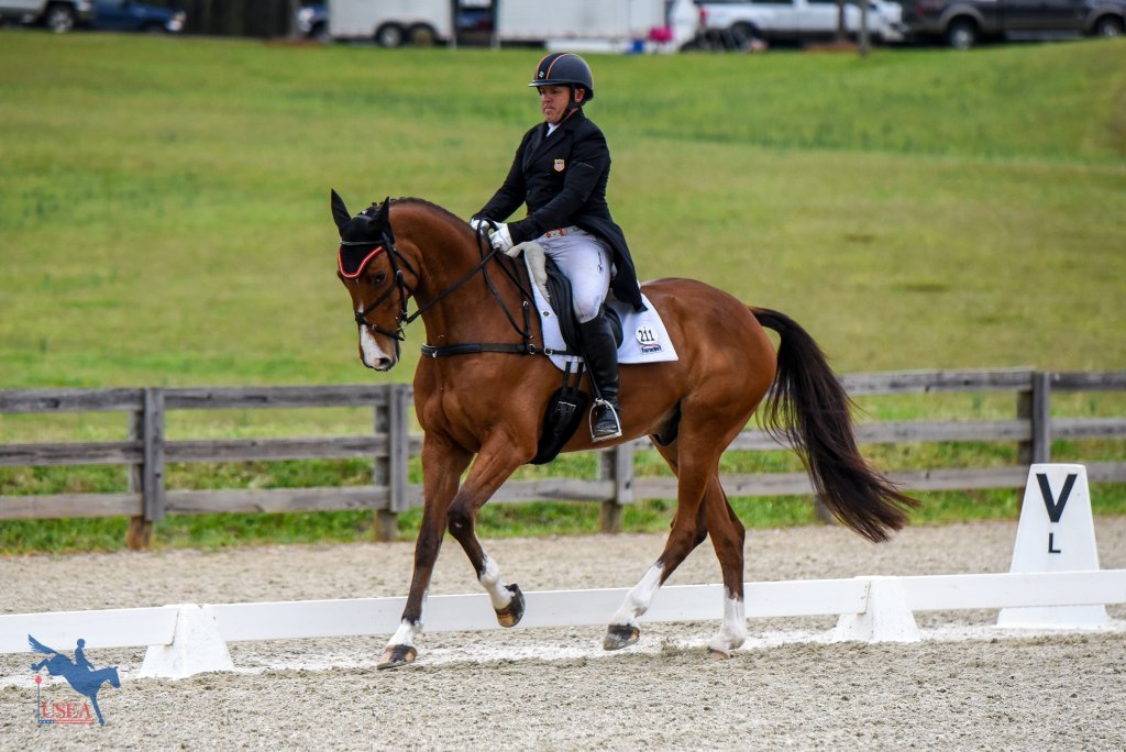 “I’ve gotten to where I can put in a pretty consistent test with him,” commented Fletcher. “The typical comments are [that we are] just a little conservative because he does everything right, he’s just not super flashy. So, I went for more this dressage go-around and he killed the trot work but he got a bit sharp with me, and a little spooky, in the canter. We had two bobbles, one of the lead changes, I don’t know what you’d call it but it was definitely not a lead change! But I’m excited, there was a bit more flash in him today and I think if we can couple that with the consistency of one of his other tests we could shave a few marks off.”