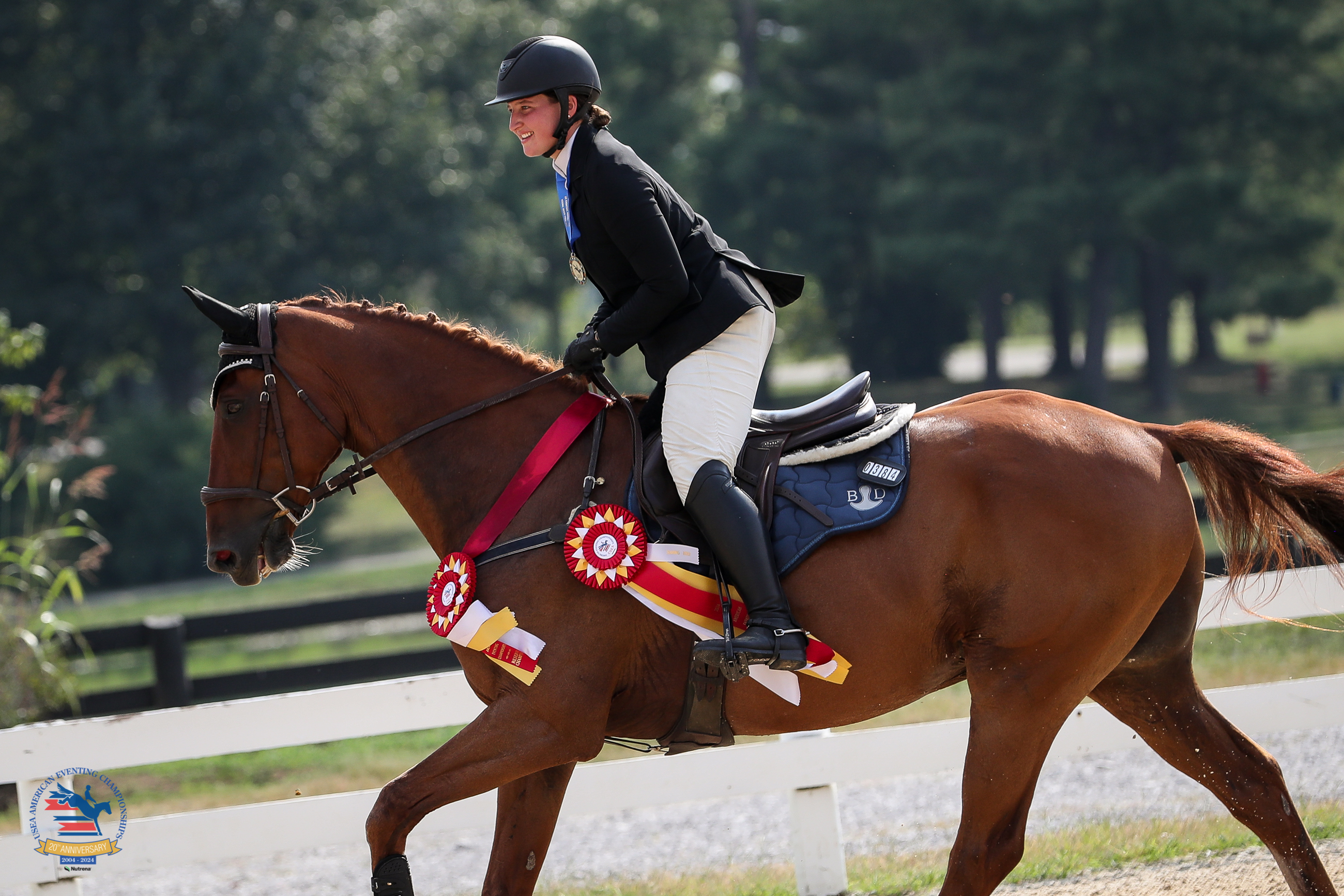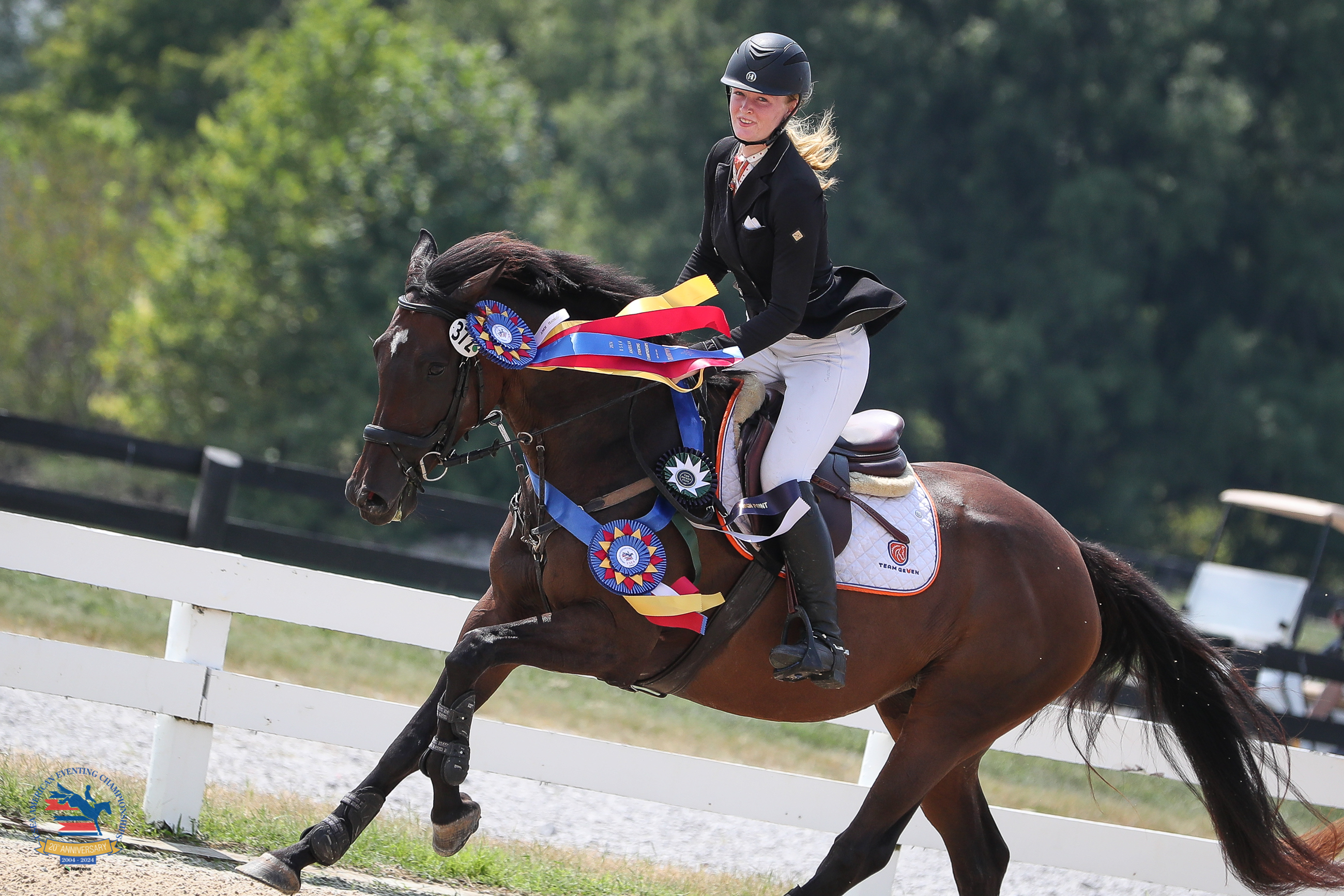 With top performances in each phase of the division, Tessa Geven and her 7-year-old off-the-track Thoroughbred mare Ameristan (Cosa Vera x Seeking Allie) earned their first national championship title together as a pair, finishing on their dressage score of 26.6. Geven’s other mount, Kathelen Amos’ Caheradoo Jack (Jack’s Delight x Caheradoo Echo) finished the division in third place with an overall score of 33.3 after pulling a rail during show jumping.