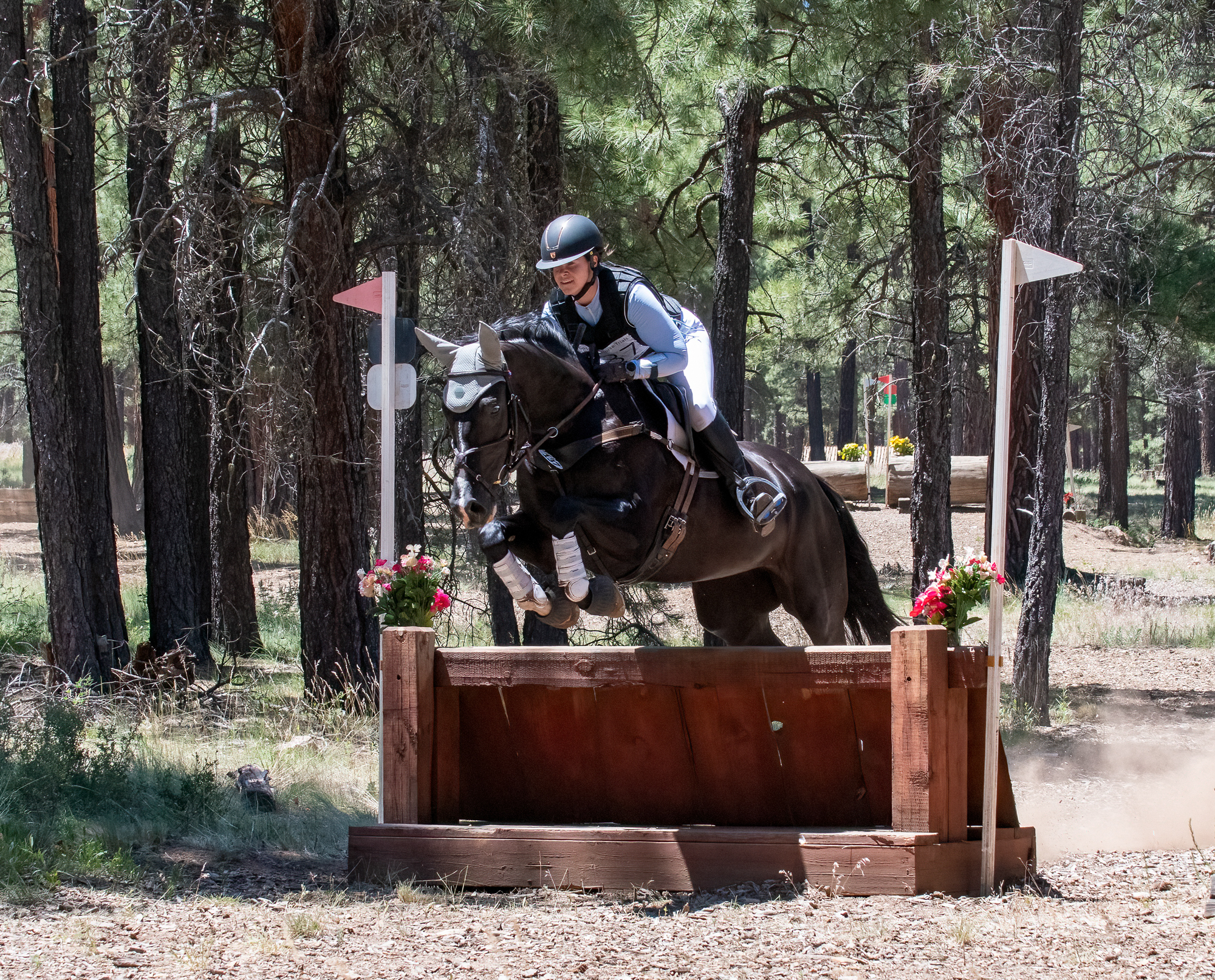 The Coconino Horse Trials take place at the Fort Tuthill County Park fairgrounds, nestled in Ponderosa pines, at nearly 7,000 feet above sea level. The setting is picturesque and attracts about 200 riders annually. Although the upper divisions don’t feature as many entries as other horse trials elsewhere in the west, Sarno believes strongly in offering Starter through Intermediate levels.