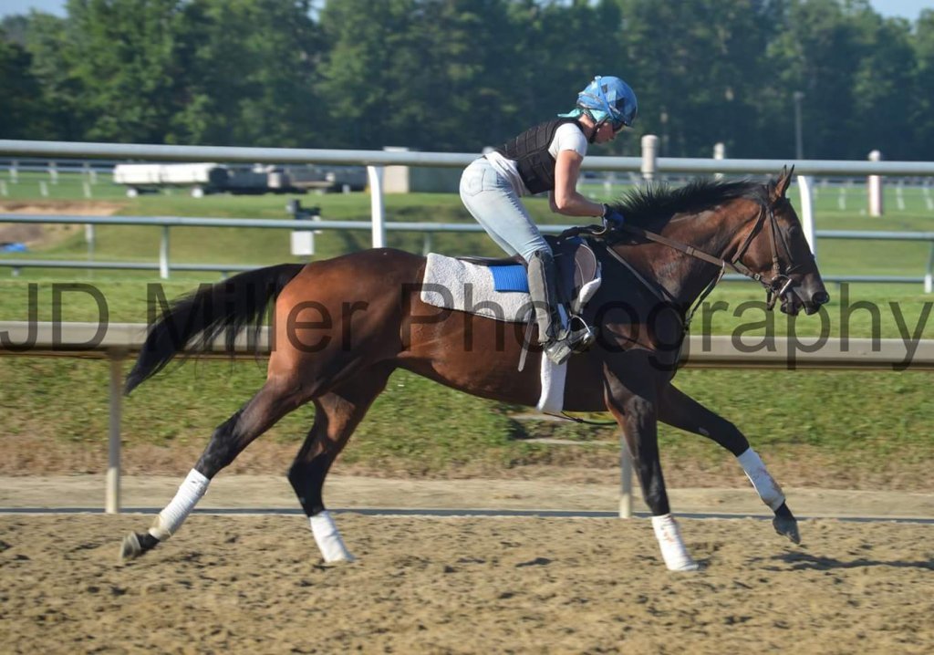 Despite promising speed work, she didn’t find any success in her first races. “She understood her job and was always a professional. She did everything right. She just seemed to lack real speed when it came time to race,” Morris said. “She ran twice as a 2-year-old and disappointed her connections with last place finishes.” After some time off, they decided to try again with turf racing in mind in her 3-year-old year, but a third lackluster performance proved to be her last on the track, and Jenkins offered Morris the ride as a sport horse.