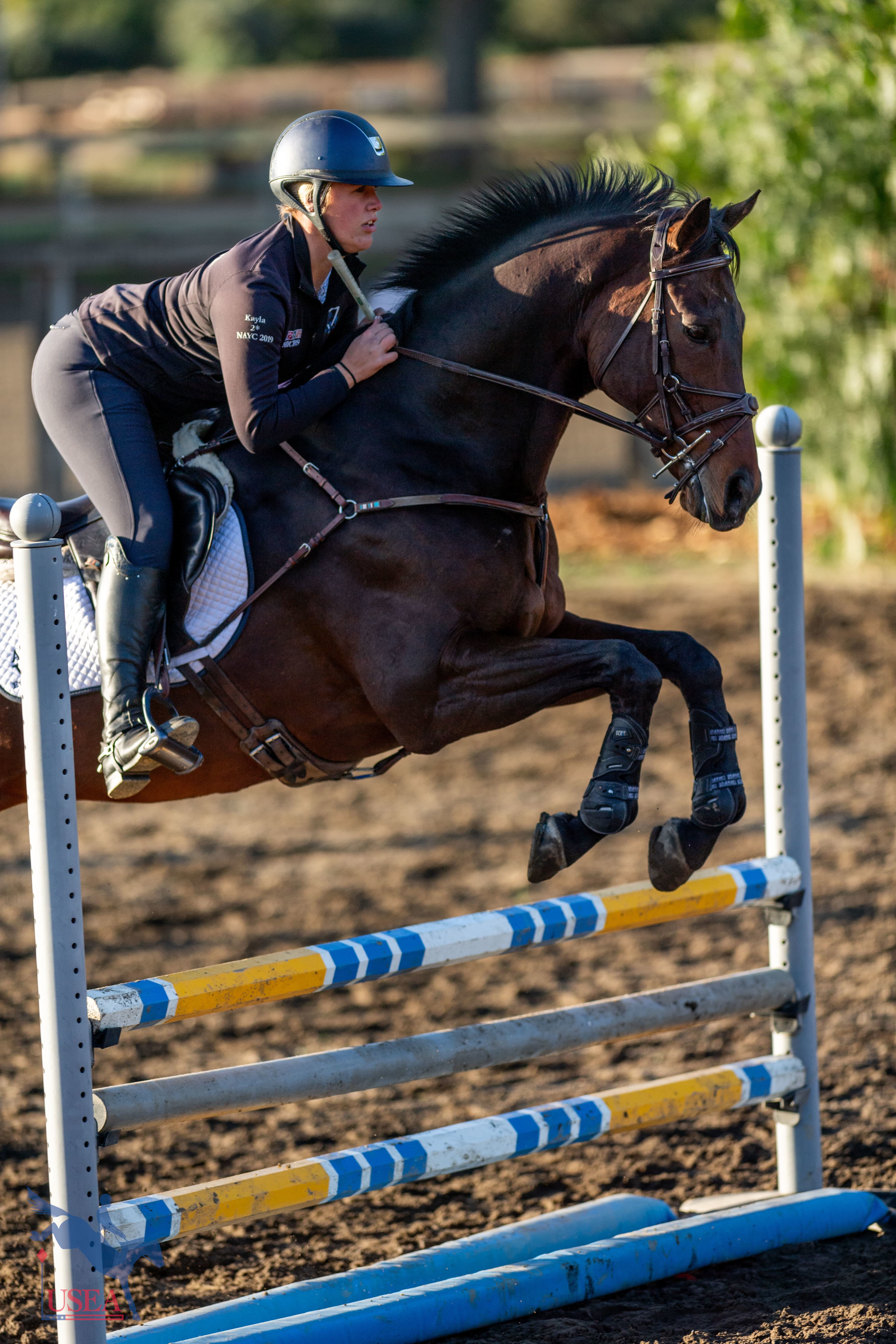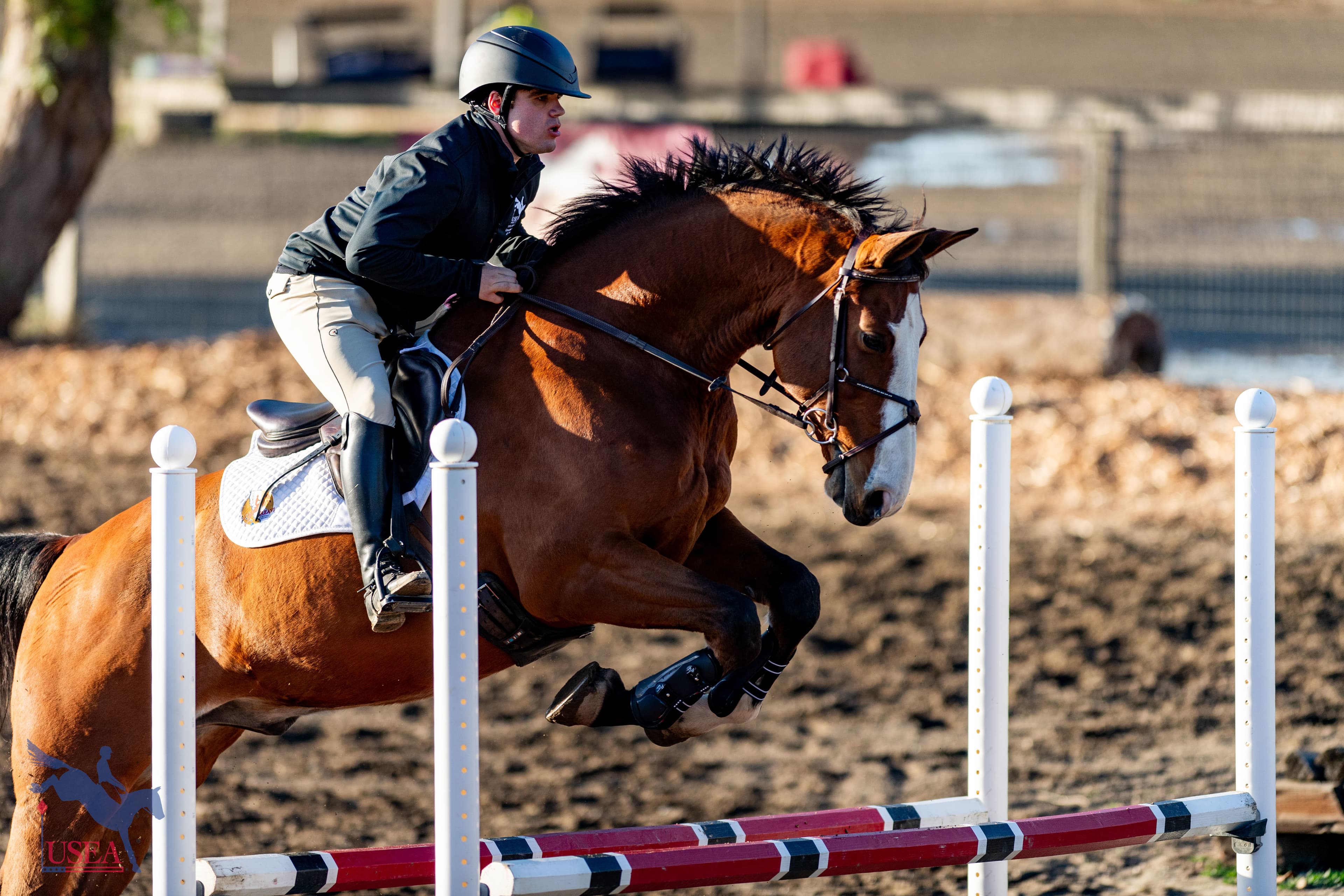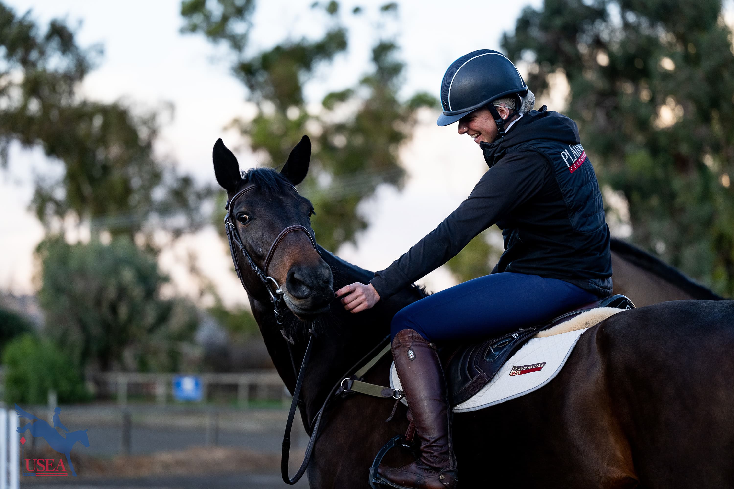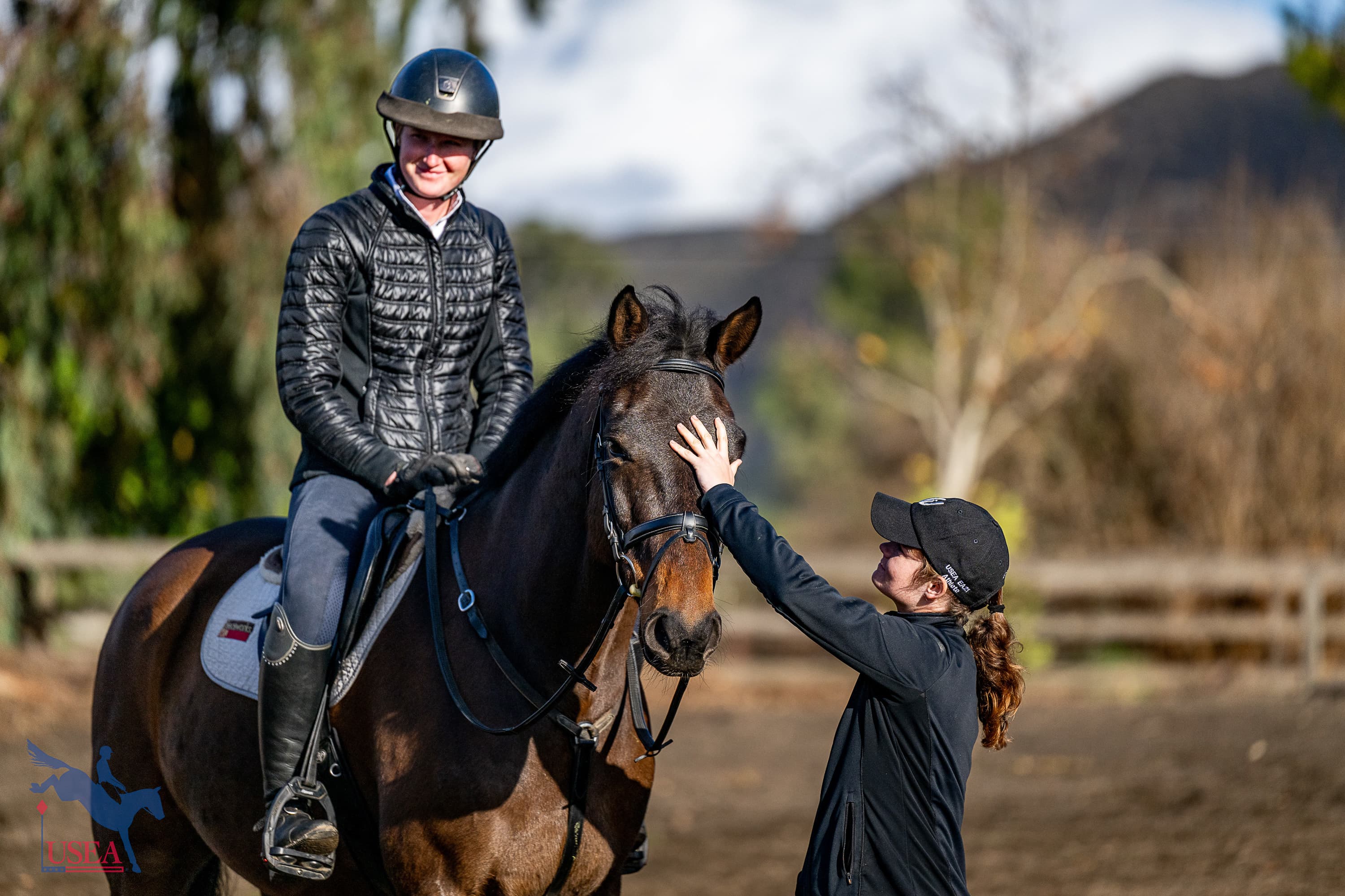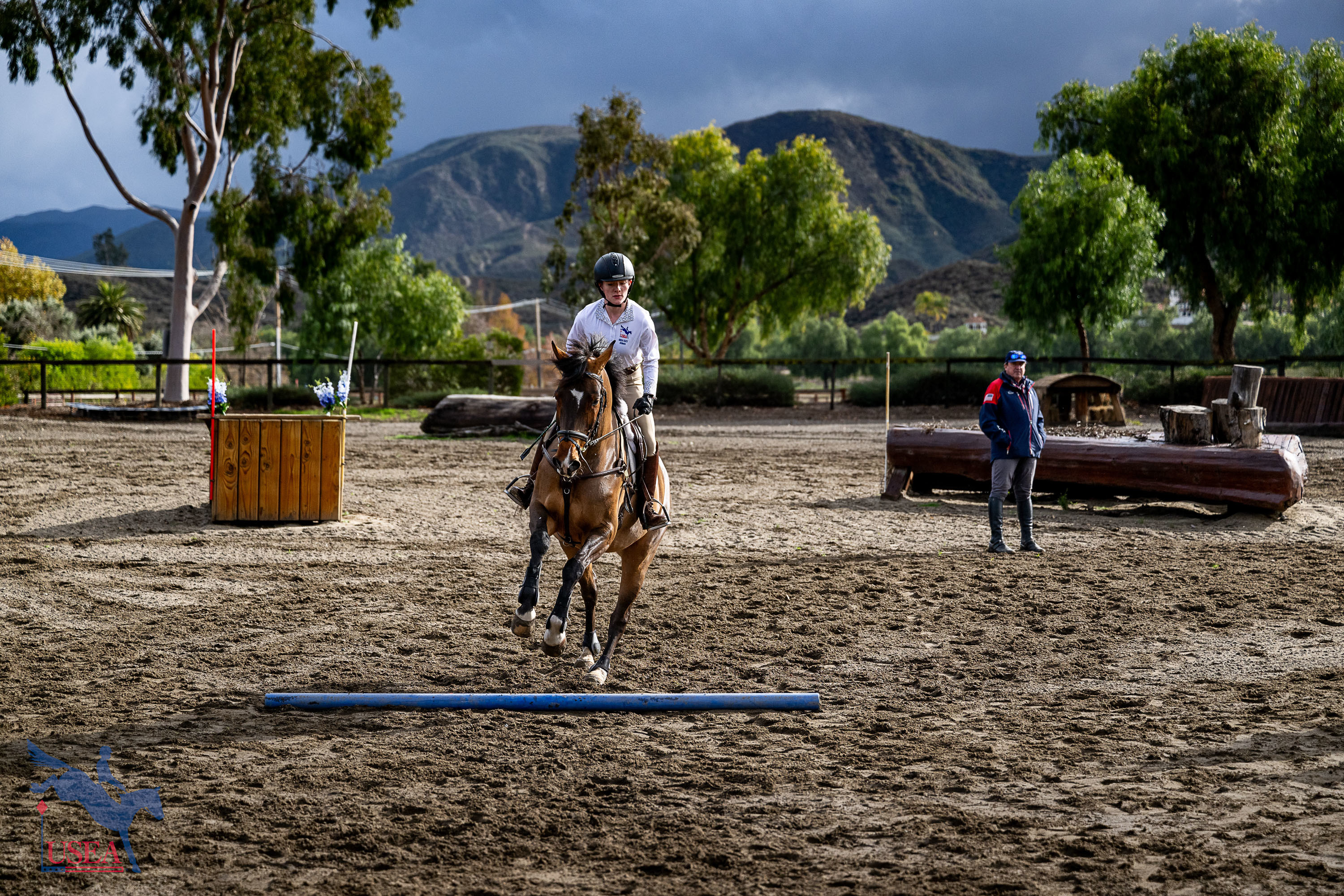 Temecula, Calif.—Jan. 3—Horsemanship and show jumping fundamentals were on the docket of day 2 of the USEA Emerging Athlete U21 National Camp at Kingsway Farm. From grooming to farrier techniques to course design questions to the concept of “next,” no stone was left unturned.
