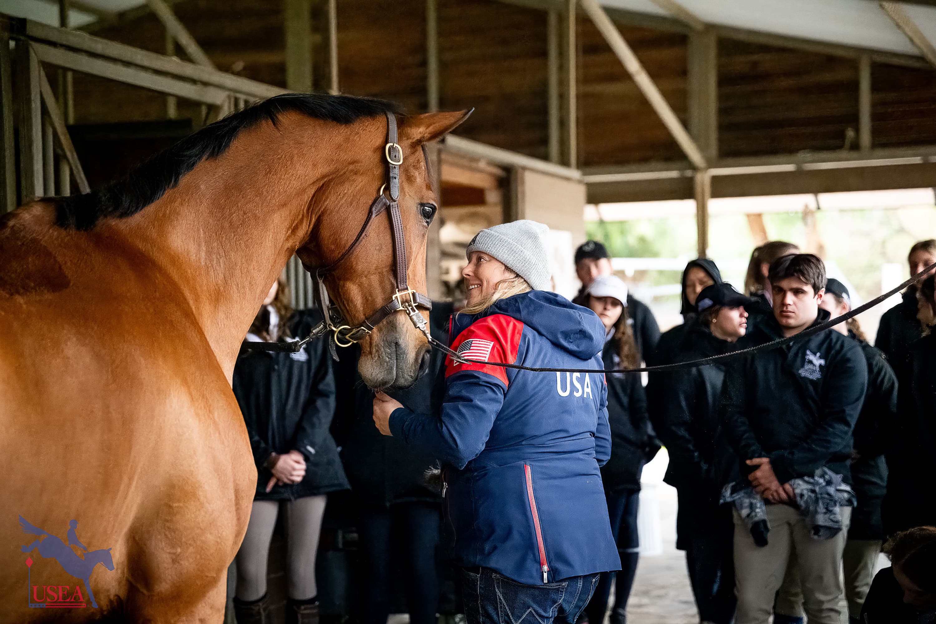 When the rain kept rearing its head and keeping riders on the ground, the schedule quickly shifted to a horse care management session led by Alyssa Dobrotin, groom for 2022 FEI World Eventing Championship (Italy) silver medal-winning team member and 2023 Land Rover Kentucky champion Tamie Smith.