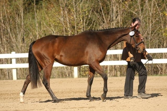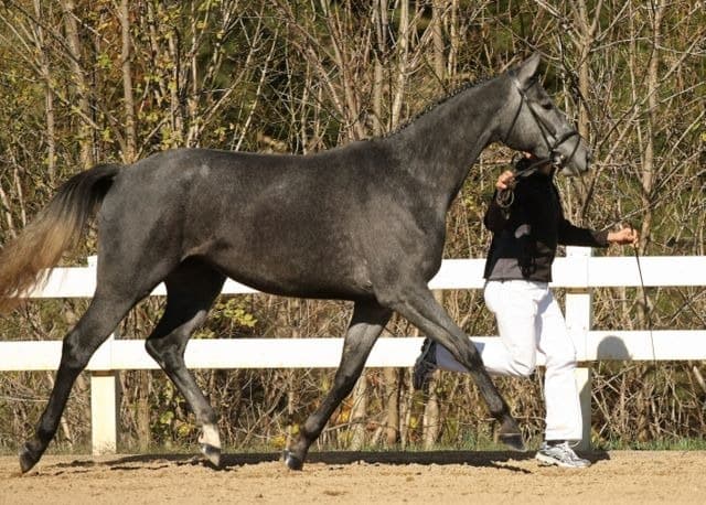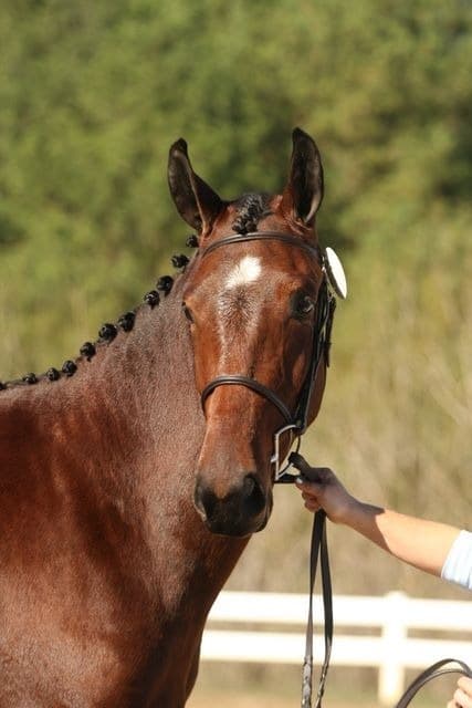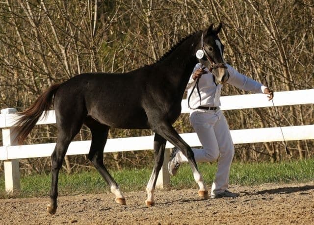 Hauptstutbuch Galina, an Oldenburg, is the filly’s dam. “On the dam’s side is Zapateado, Reserve Champion of the Stallion test in 1992 in Vechta. This bloodline is important as it carries the blood of Zeus. Zeus has 3/4 Anglo-Arabian blood. This is needed for endurance. You can also see the Anglo-Arab in her beautiful feminine face! Zeus also carried Talisman blood, and he is the damsire of Furioso II. Maybe most important was written to me by Elmar Pollman-Schweckhorst who said that in her pedigree, you can find the outstanding jumper producer Gotthard three times!”