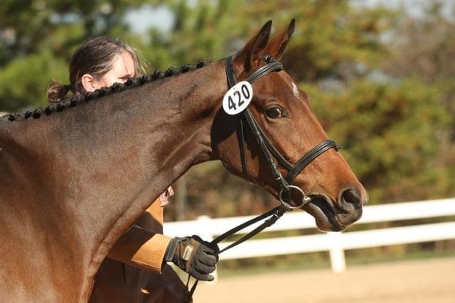 The highest score of the day (74.0) went to Querida, a yearling filly owned and shown by Margaret Young. The Oldenburg filly is sired by the highly regarded young stallion Quaterback, who’s making a name for himself in the sport horse community.