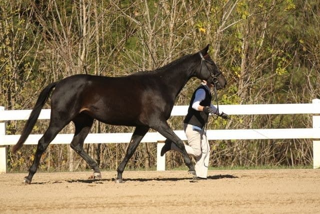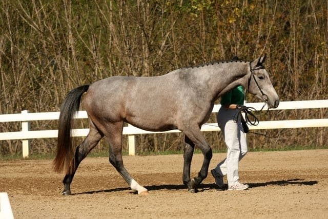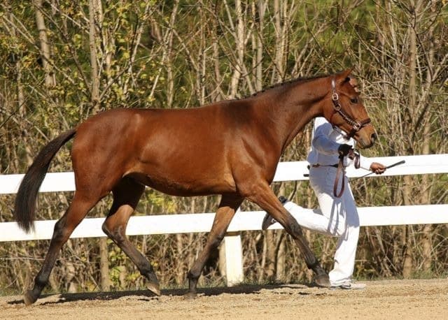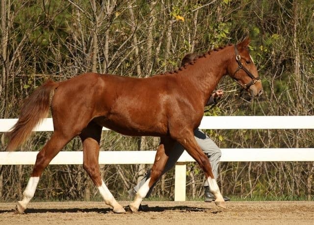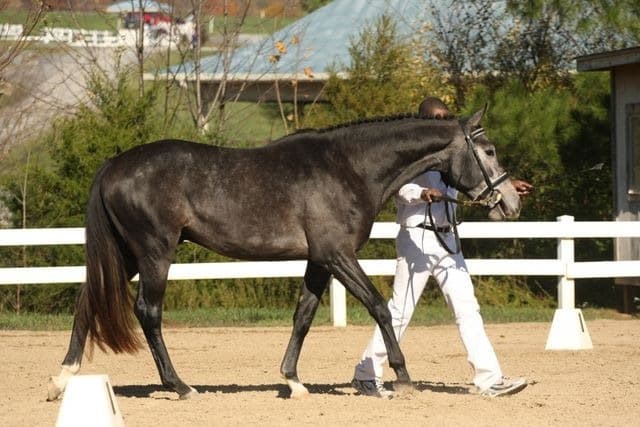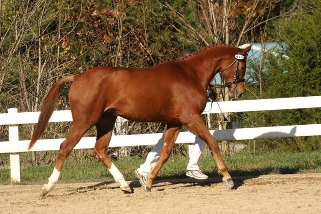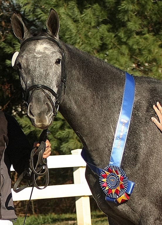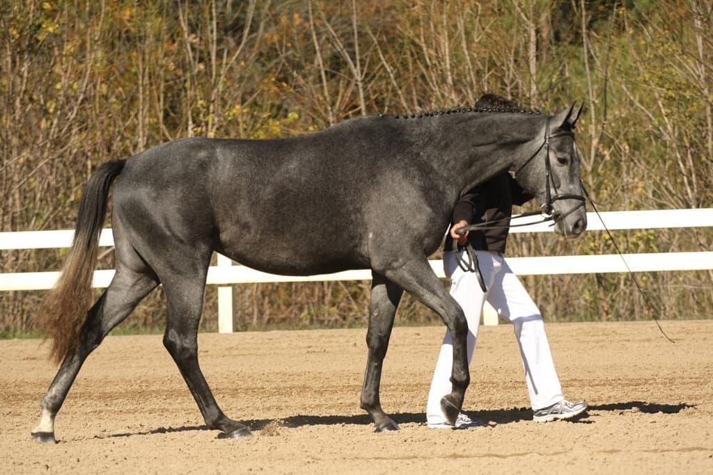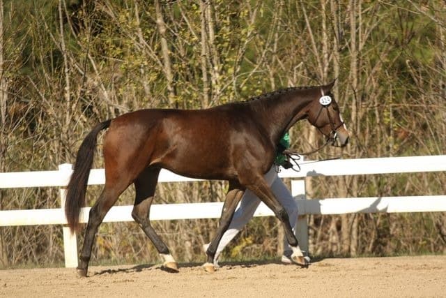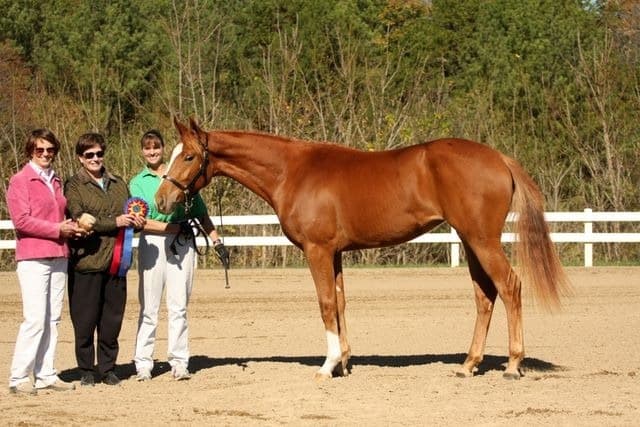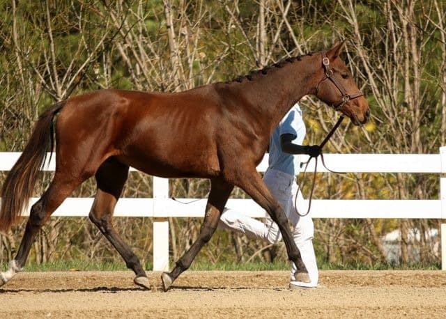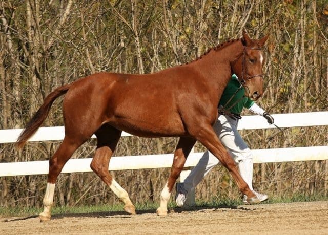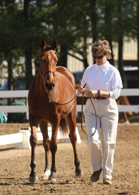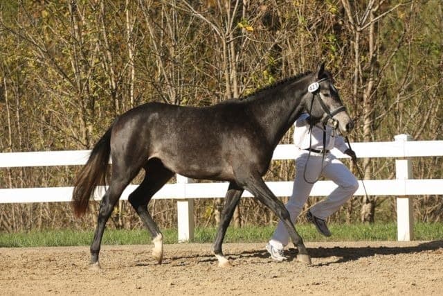 Leonardo's Gran Cavallo, owned by Stacey Wood, was named top Yearling Colt/Gelding with his score of 75.7. The Oldenburg/Thoroughbred is sired by Landfriese II, a regarded sport horse sire with an influx of Thoroughbred blood. Additionally, Gran Cavallo's Irish Thoroughbred dam, Ice Princess, was bred at Bruce Davidson's farm Chesterland.
