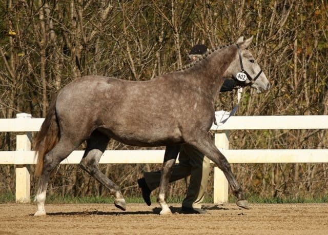 While Shutterfly's Buzz also trotted away with the Two-Year-Old Championship, Royal Alyance, also owned by Wits End Eventing, was dubbed Reserve Champion. Scoring a 75.4 to win the Two-Year-Old Colt/Gelding class as well, the Oldenburg also shares the same sire, Royal Appearance, as Comet Royale. The grey gelding is out of the Thoroughbred My Martina, who's also the dam of the Copperfield, the third placed Yearling Colt/Gelding.
