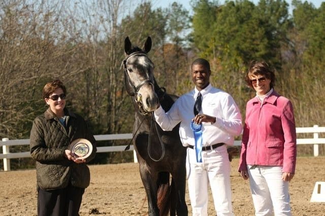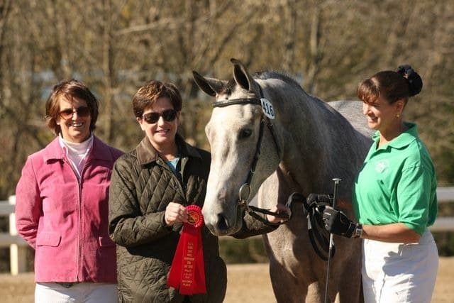 Dee White's Oldenburg Prada C (Presidio x Cartier) won the Three-Year-Old filly class with a 66.4.