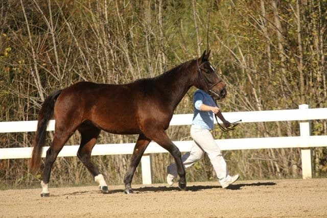 White has high hopes for Buzz’s career, and plans to bring her along slowly, and also check out her scope in the jumping chute. “I will start her in dressage in the spring and she will then do her Mare Performance Test for Oldenburg. I will then decide if I will breed her or continue to jumping. If I continue to jumping, I will do embryo transfer so she can have her first foal with one of my broodmares on the farm. I would like to try her with a nice dressage stallion. Buzz will be one of my foundation mares for my eventing breeding program.”