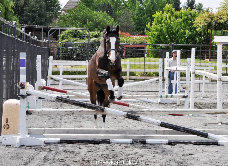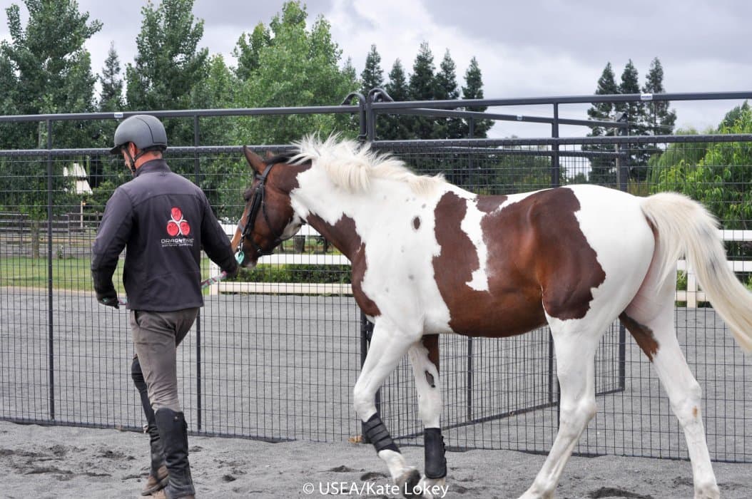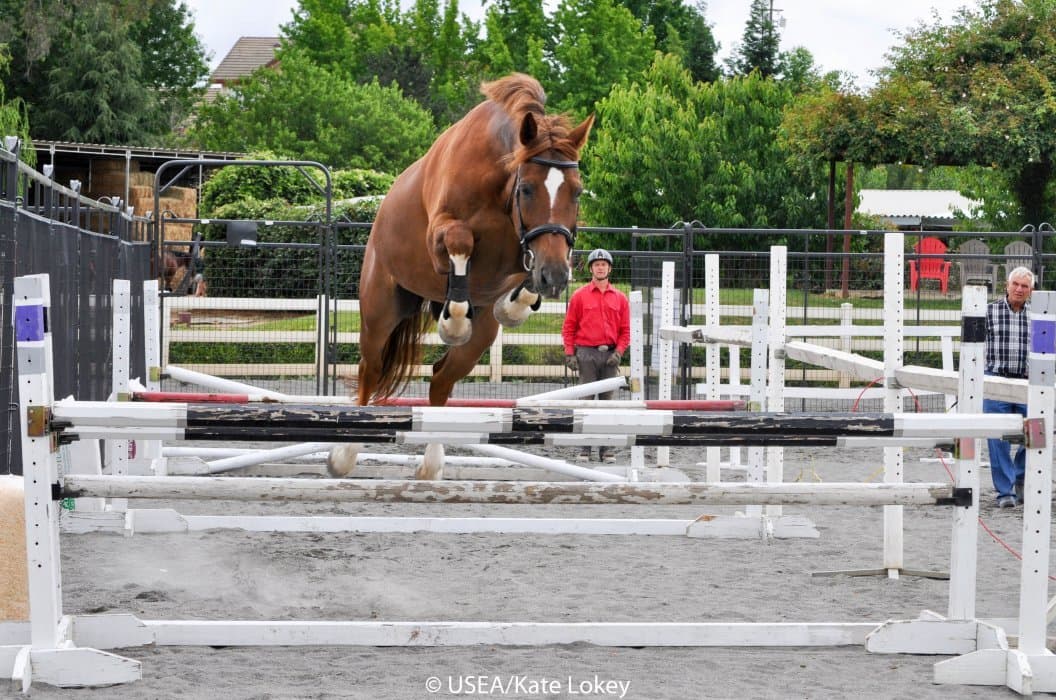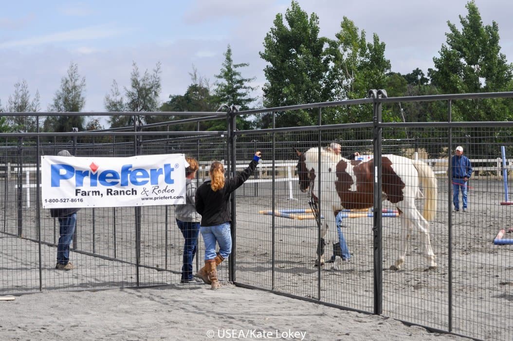 Thirteen horses traveled to Wilton, Calif., this past weekend to participate in the Priefert USEA Future Event Horse (FEH) Jump Chute Clinic at the beautiful Dragonfire Farm. The two day clinic provided owners, trainers, riders, breeders and handlers on the West Coast the opportunity to familiarize their young horses to the jump chute process. As previously announced, the 2016 USEA FEH Championships will feature a mandatory free jumping competition for the 3-year-old horses in addition to the standard in-hand class. In an effort to make the transition to this new addition as smooth as possible, the USEA is working to offer as many educational opportunities, like this one at Dragonfire, as possible in the months leading to the Championships.