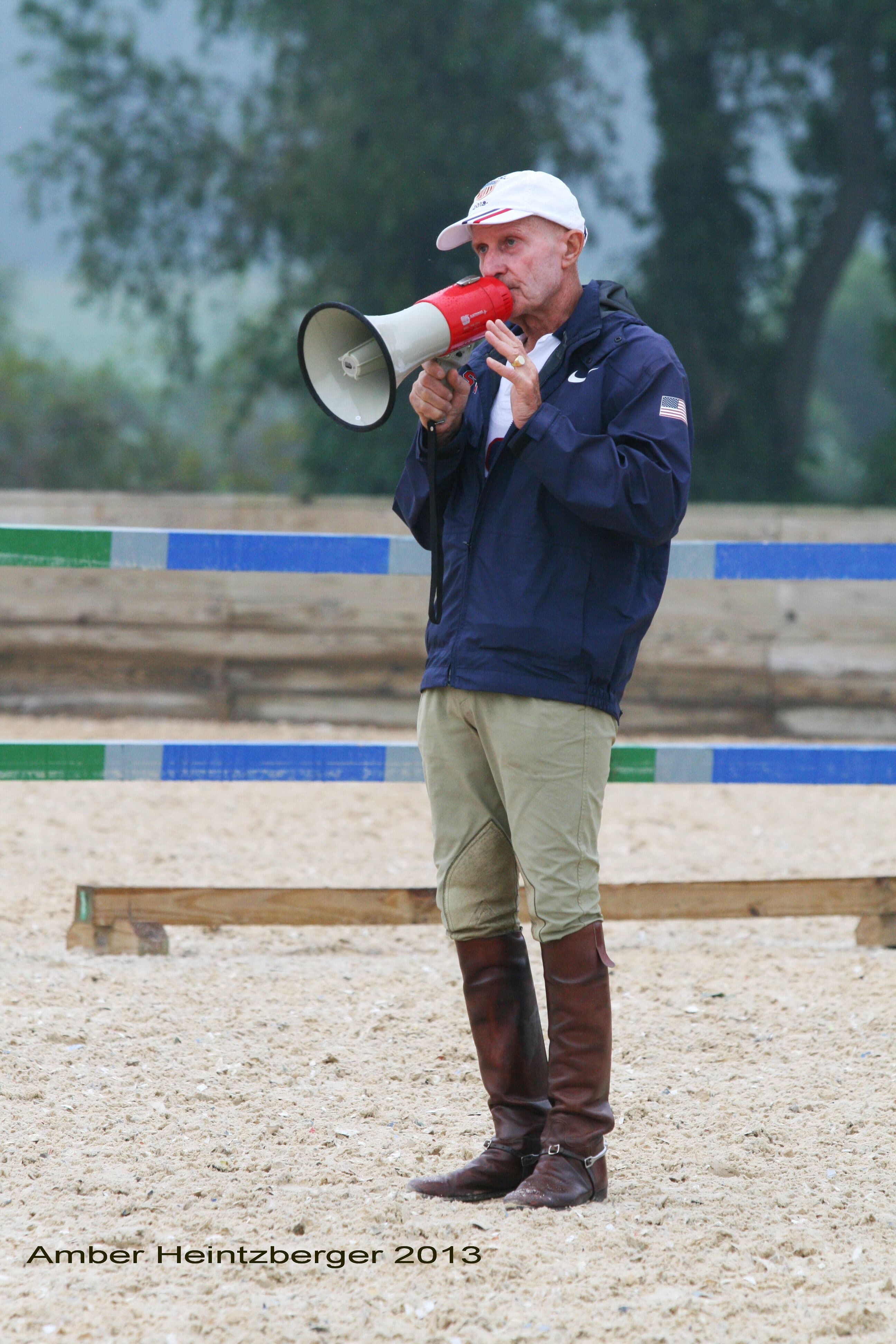 On the first day he focused on flat work and kept the fences small, adjusting everyone’s stirrup length. He explained that there are four stirrup lengths necessary for eventers - from longest to shortest: dressage, flat work for jumping, stadium jumping, and cross-country. Leg position and hand position are essential for correct riding, and a correct seat will be the result of independent use of the leg and hand – or as he put it, “Leg without hand and hand without leg”. And no matter the length of stirrup, the heel always must be lower than the toe.