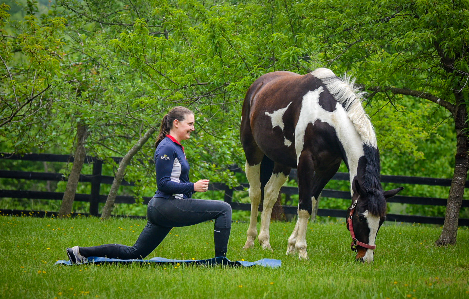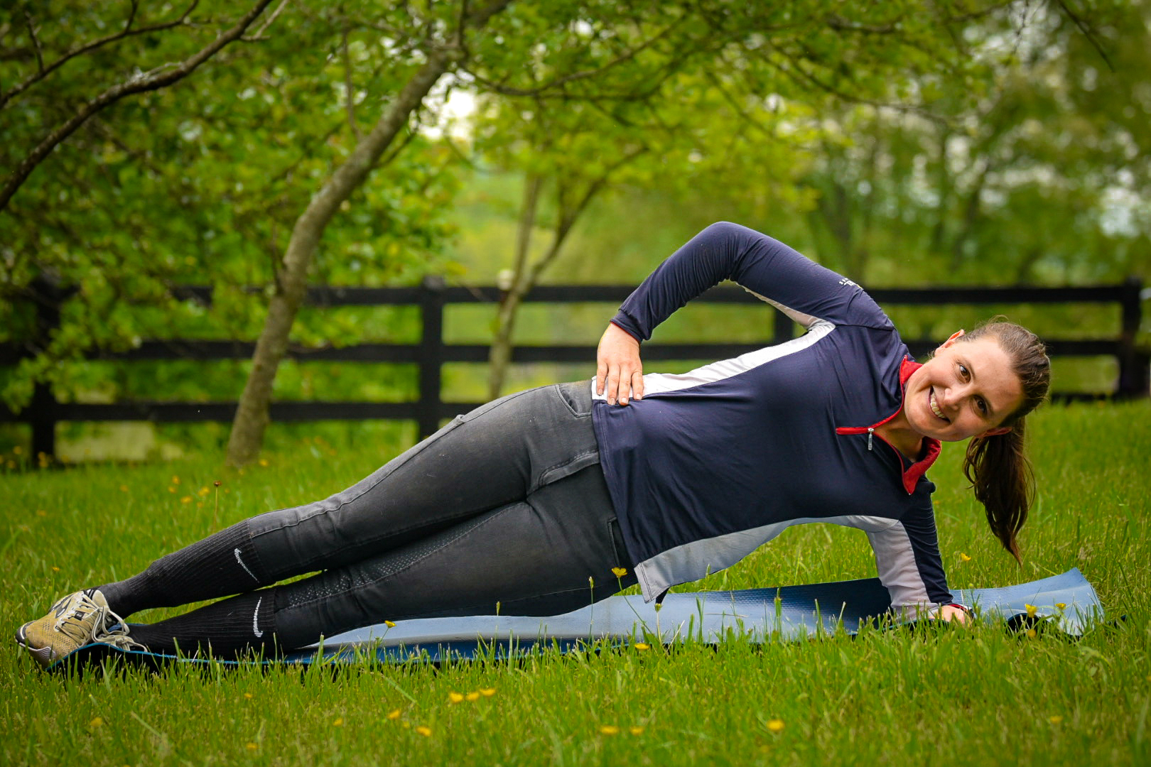 There isn't a one-size-fits-all solution to improving your galloping position, so know that these exercises are just one component to gaining strength in the saddle. The three exercises I have found that across the board will help improve a rider's cross-country stamina and strength whether they are competing at the first Starter or are a seasoned Advanced competitor are the lunge, clamshell, and side plank.