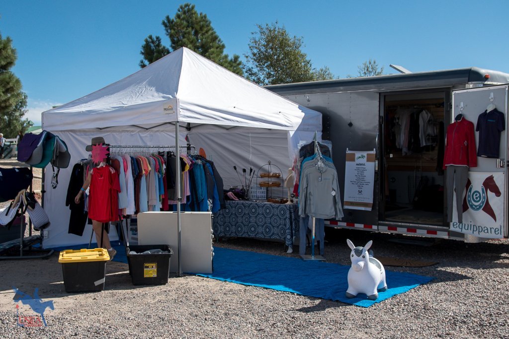Equiapparel, a local Colorado-based company, is sponsoring the AEC at the Bronze Level this year and is on the grounds with a wide variety of athletic wear created for riders by riders. They have a sale tent this weekend with exclusive design t-shirts for $15 and other sale bin items for shoppers to take advantage of. Equiapparel also offers a full suite of customization services. They will work to create a logo if someone doesn’t have one and can print and embroider on everything from tank tops and polo shirts to heavy winter jackets. Also, Equiapparel provided all the USEA AEC volunteer t-shirts! Be sure to stop by and check out their unique selection.