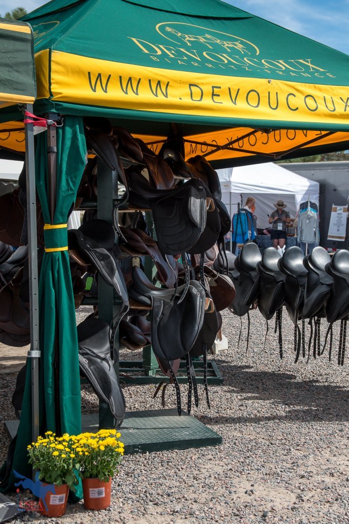 Platinum Sponsor Devoucoux has a wide selection of new and used saddles on hand this weekend, as well as accessories like girths, boots, and tack cleaner and two certified saddle fitters that can help fit a horse for a saddle. There are some discounted used saddles for sale and some special deals if shoppers are interested in ordering a new saddle. Plus, if a rider has a Devoucoux and would like to have it cleaned, they can take it on over to the Devoucoux booth in the Vendor Village and they’ll buff it up!