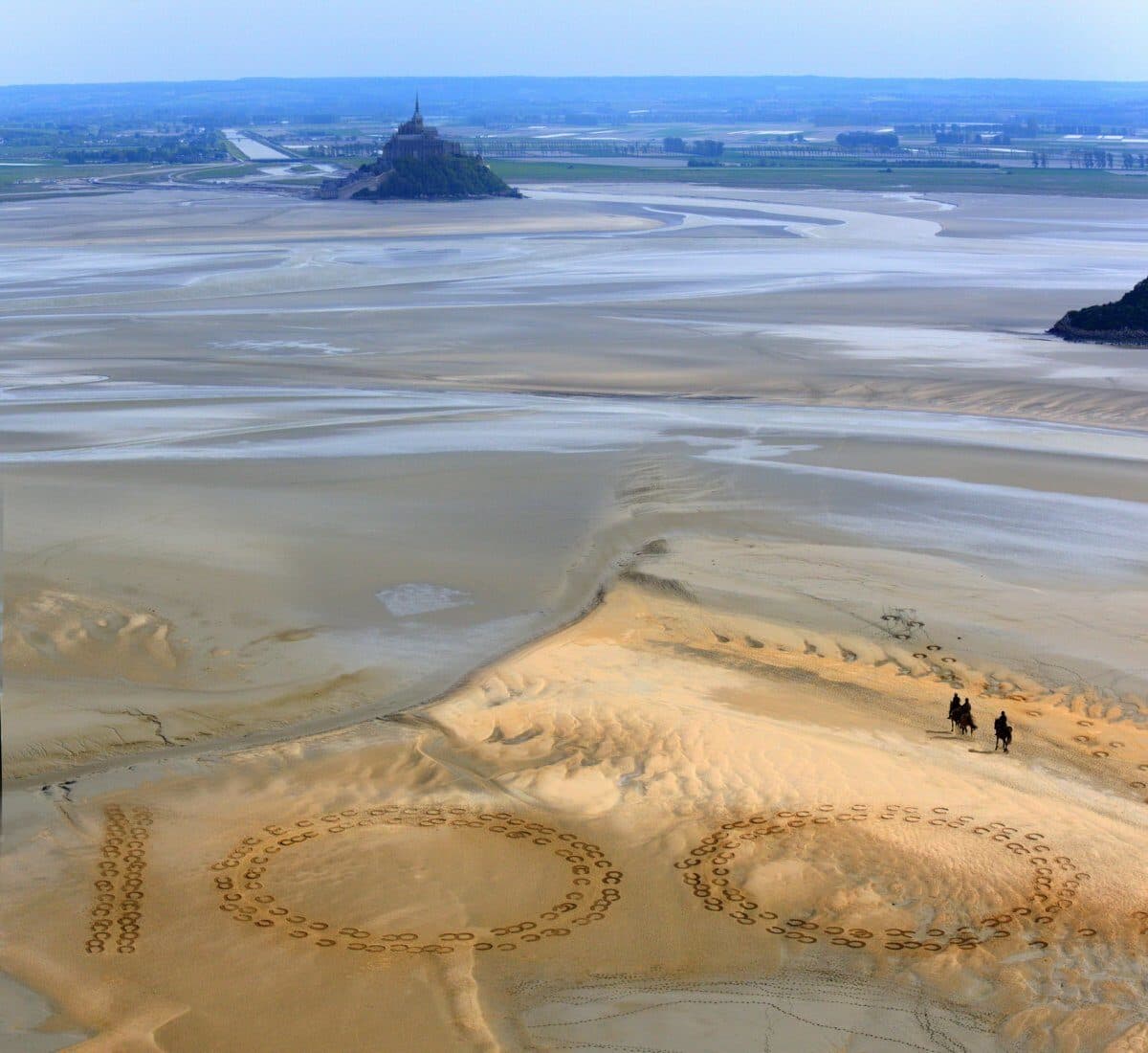 A unique piece of sand art on the Bay of Mont-Saint-Michel in Normandy marks one hundred days until the start of the Alltech FEI World Equestrian Games™ 2014 in France this summer.