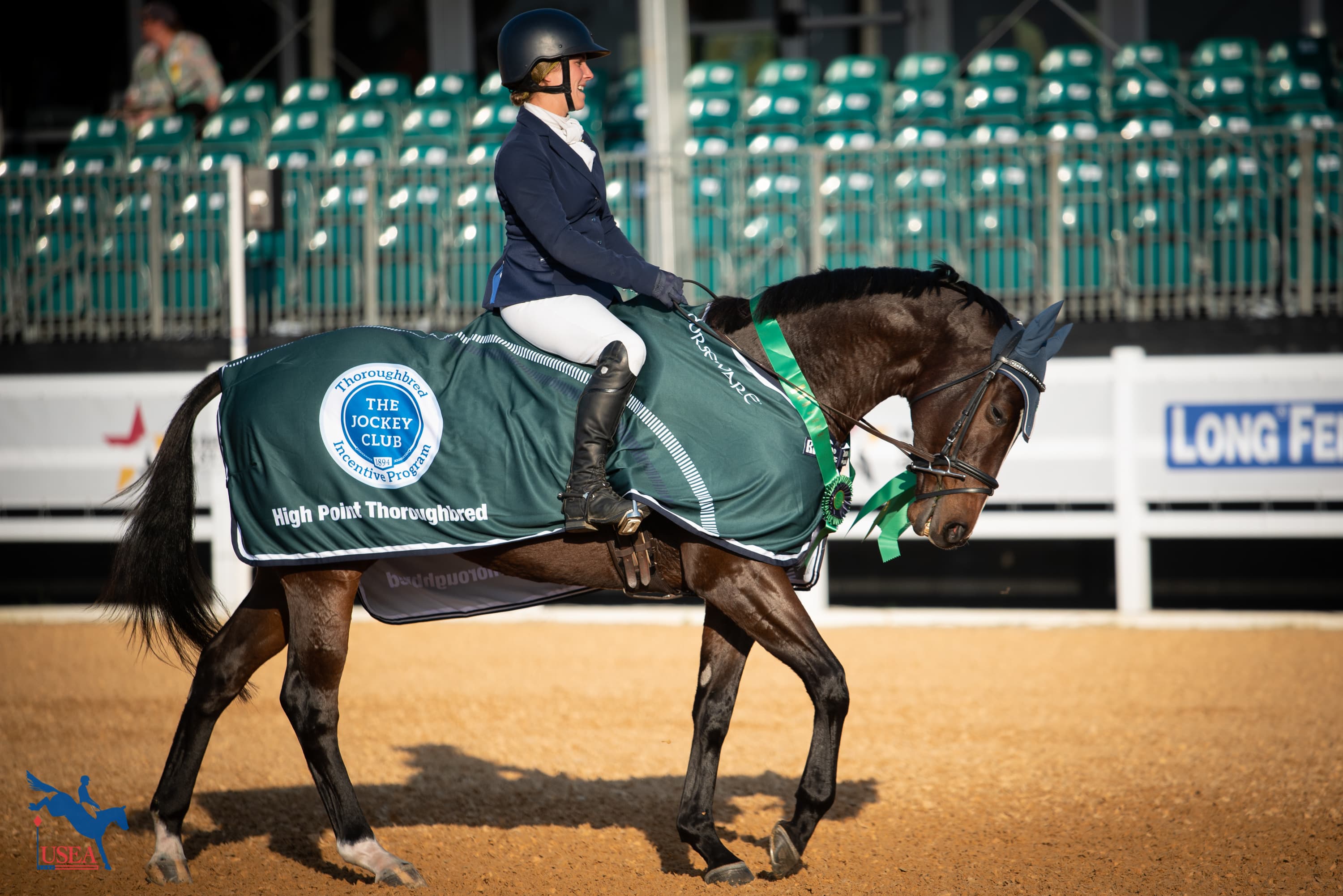 The T.I.P award is given to the highest scored Thoroughbred in the YEH East Championship, no matter what age division. This award is given to encourage the retraining of Thoroughbreds in other disciplines upon completion of careers in racing or breeding. The winner in the YEH East Coast 4-year-old Championship was Judge Johnny (Empire Maker x Lucas Street) owned by Bonne Chance Farm, LLC and ridden by Carleigh Fedorka. The 5-year-old T.I.P winner was Lincoln’s Address ridden by Phillip Dutton.