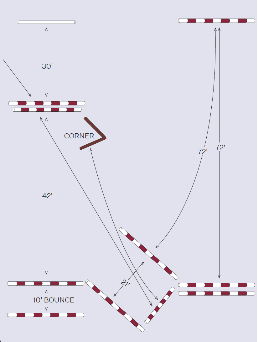 Initially, I don’t teach trying to have an eye to a fence, because everyone has a “fabulous” eye one-to-two strides away, but then it’s too late to make a change, though it’s not too late to be aware of the situation you’re in. Instead, I like to teach having, and maintaining, a good canter. As the rider, it’s your job to create the length of stride that’s appropriate for the job at hand. You will need a different canter for a 10-foot bounce than you will for a 36-foot combination, and a different canter for a 21-foot one-stride than a skinny off a long approach. Learning which canter you need for each situation, and then being able to seamlessly change from one canter to the next is the key to jumping success.