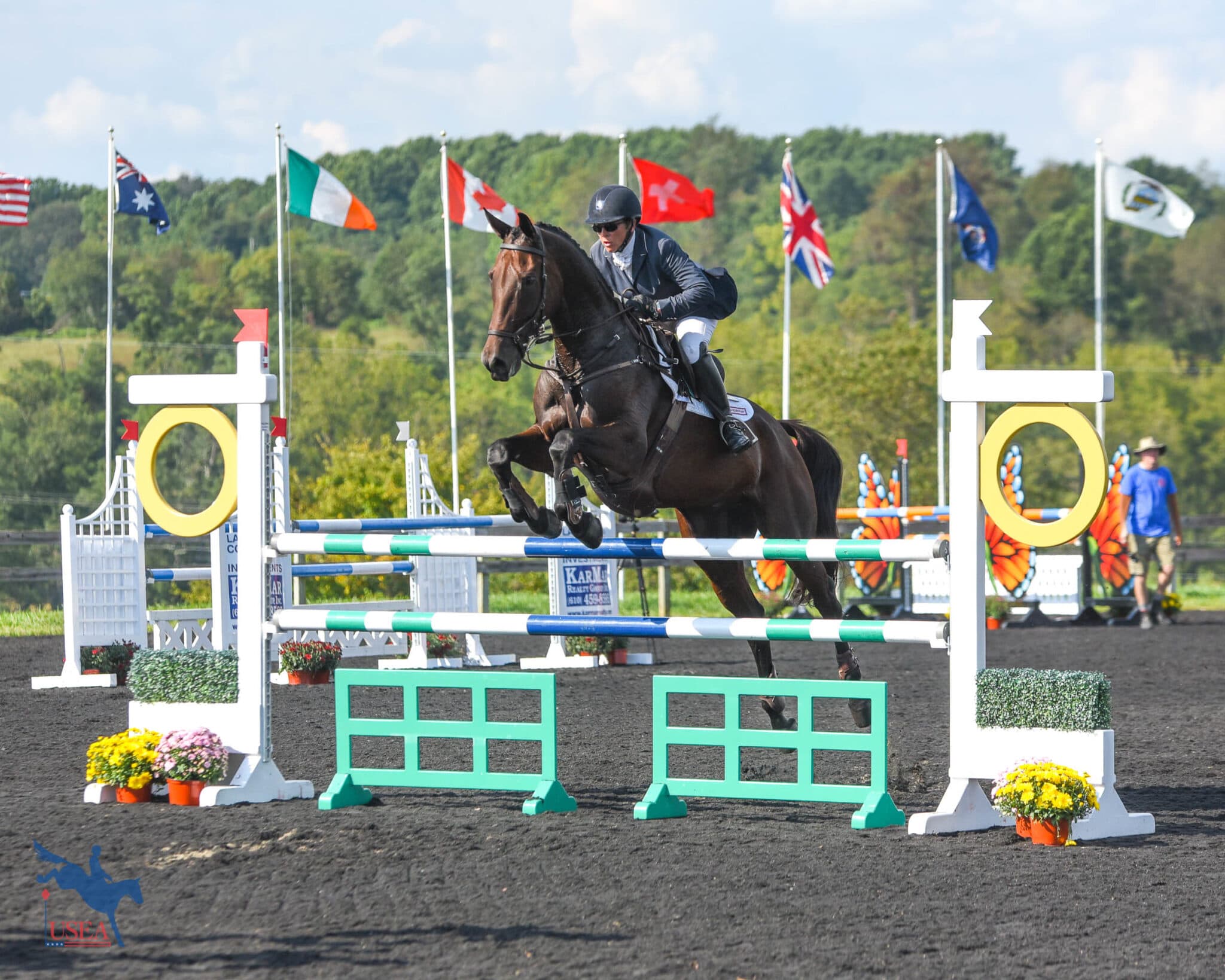 For riders, this exercise is more about what goes on between the fences versus over the fences. The turns really teach the riders to keep their leg on before and after the fences and are a great tool to teach riders to look through their turns for their next jump.