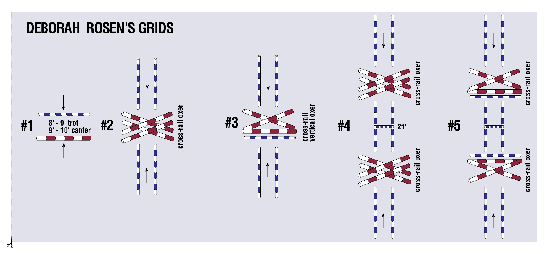 I’m including Exercise #5 in this article because it is my go-to exercise for a horse that just doesn’t care. But I only use this for pairs that are established at the Preliminary level or above, and it is really only needed for the overconfident horse that needs to come to an understanding with their rider about proper behavior in the show jumping ring! My general rule of thumb is that if the horse cannot canter a 10-12 meter circle in good balance on a soft rein, they shouldn’t do this exercise. Regardless, these jumps don’t have to be very large.