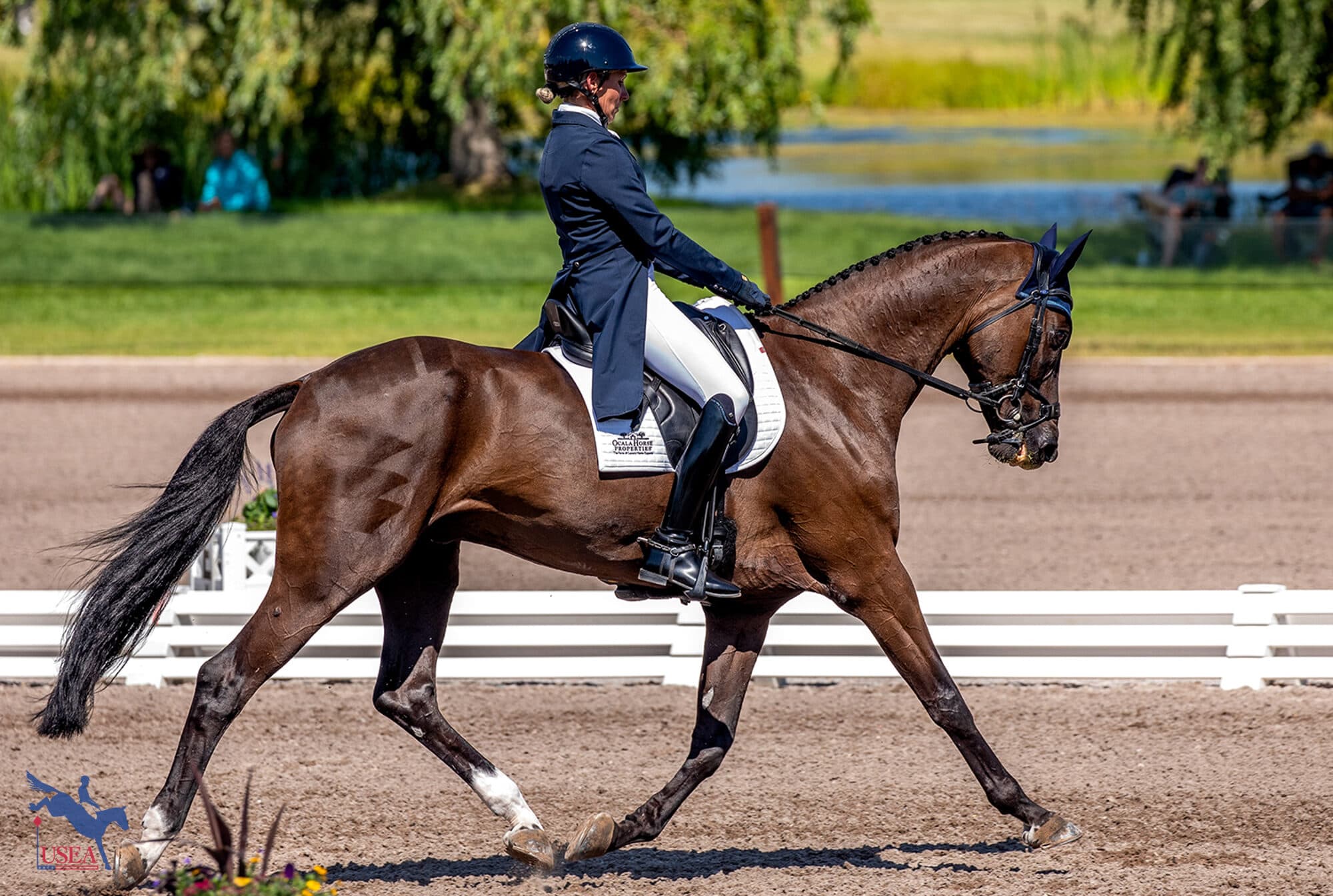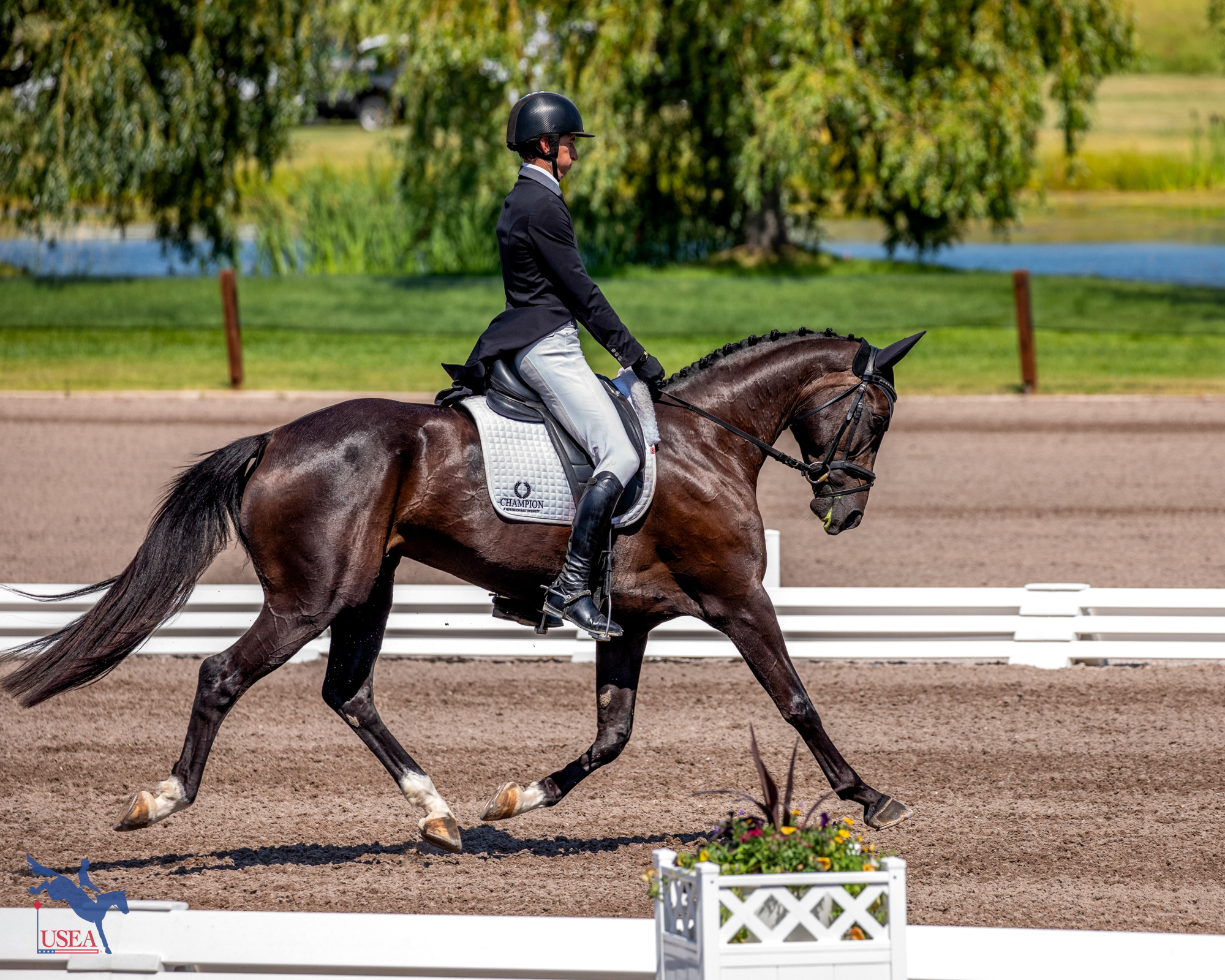 Kalispell, Mont.—July 21—Just as the sweat of the day started beading up on foreheads, CCI4*-L competitors entered the dressage arena at Rebecca Farm in Kalispell, Montana, ready to bring on a heat of their own. In many ways, this initial phase makes a first and lasting impression—a score that will be relentlessly chased throughout the weekend as the jumping phases stack up on the westward horizon.