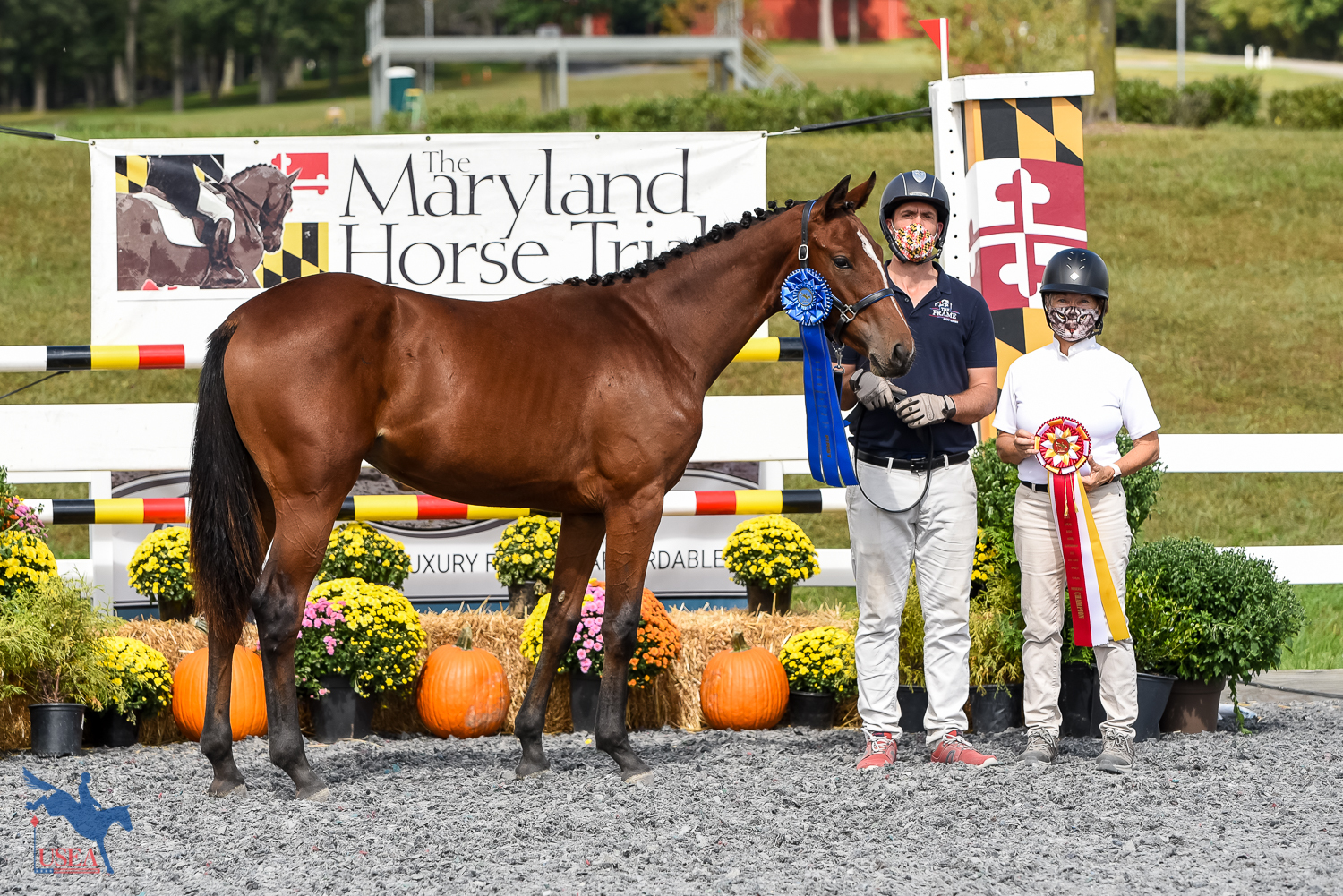 The seven yearling competitors – three fillies and four colts – presented to Walker and Graham-White this afternoon. Utah Beach (Ulmar Mail x Avalan), Monica Fiss’s Oldenburg colt, earned the highest score of the weekend, an 87.15, to be named the FEH East Coast Yearling Overall Champion and Colt Champion. Utah Beach was also the recipient of The Maryland Horse Industry Board Maryland-Bred Award.