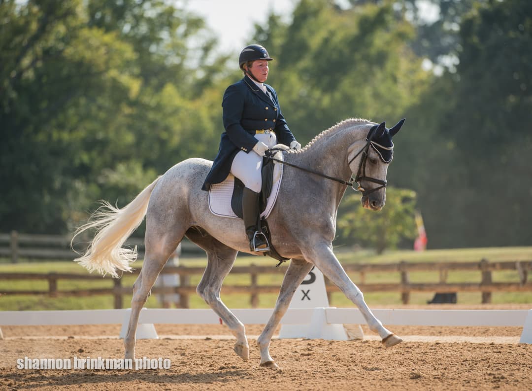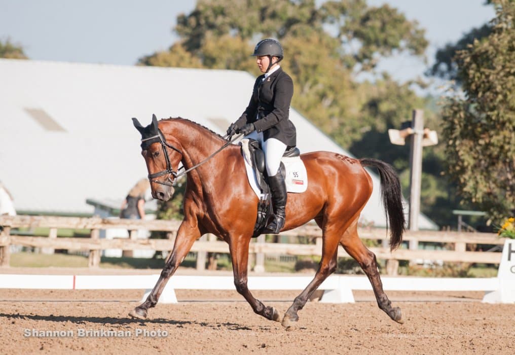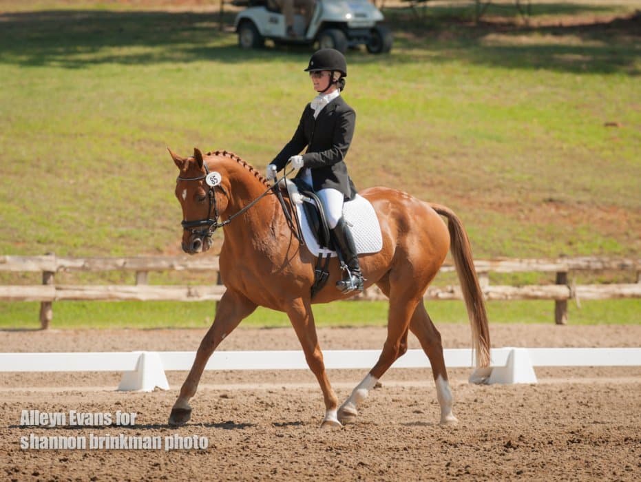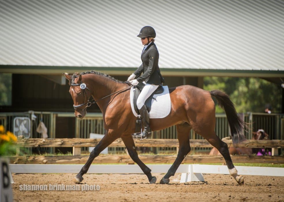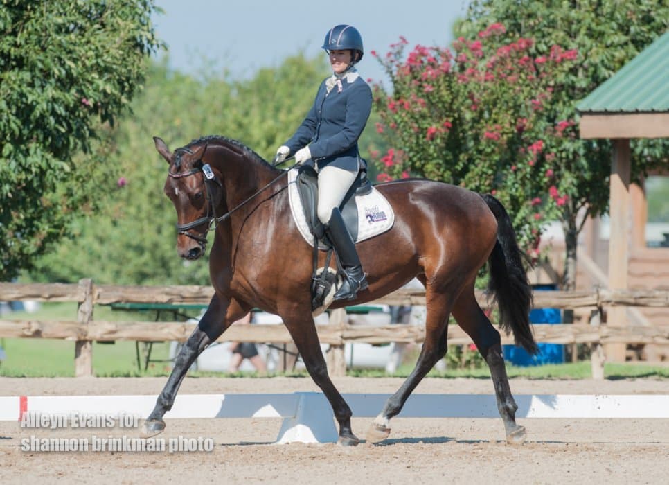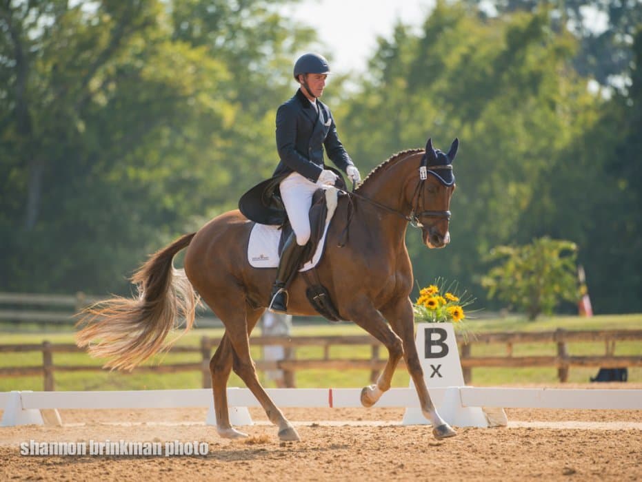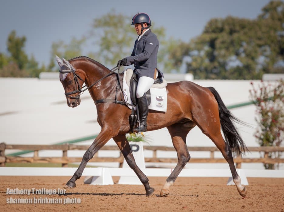 West coaster Matthew Brown is making a trip to the east coast, and stopped off in Texas along the way to put in a lovely dressage test on Super Socks BCF that puts them in second place. The horse is owned by the Blossom Creek Foundation, and put in a true effort with a few green bobbles.