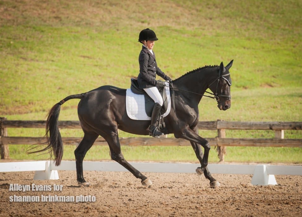 Fifteen-year-old Kelsey Holmes posted the best dressage score of all divisions that ran today (21.4), and on a new horse to boot. She and Heart of Gold SE, a 7-year-old Holsteiner by Cathalido, are leading the Jr. Training division, and have only been partnered for a few months and qualified for the AEC separately. She bought the mare from her trainer, Jennifer Wooten, and it is only their fifth show together.