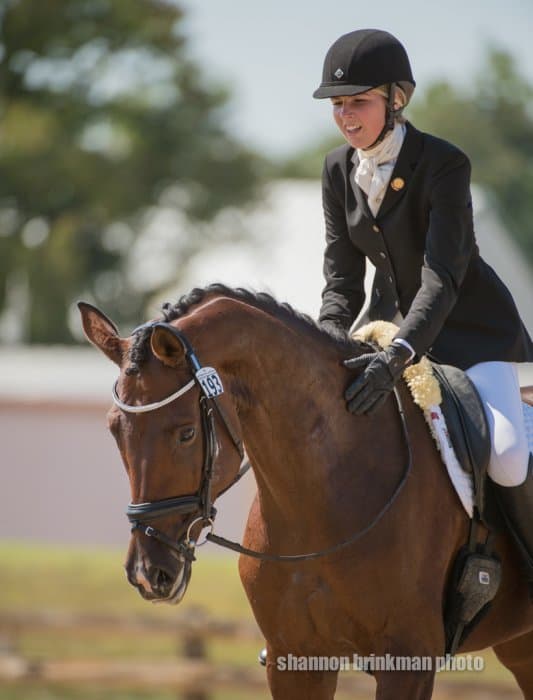 Christina Henrickson from Long Mount, Colo., balances life as a psychiatric nurse and a rider, and the hard work paid off today. She and Princess Pavan, an 8-year-old Hanoverian mare that she has produced herself scored a 27.8 in the Sr. Preliminary Amateur division.