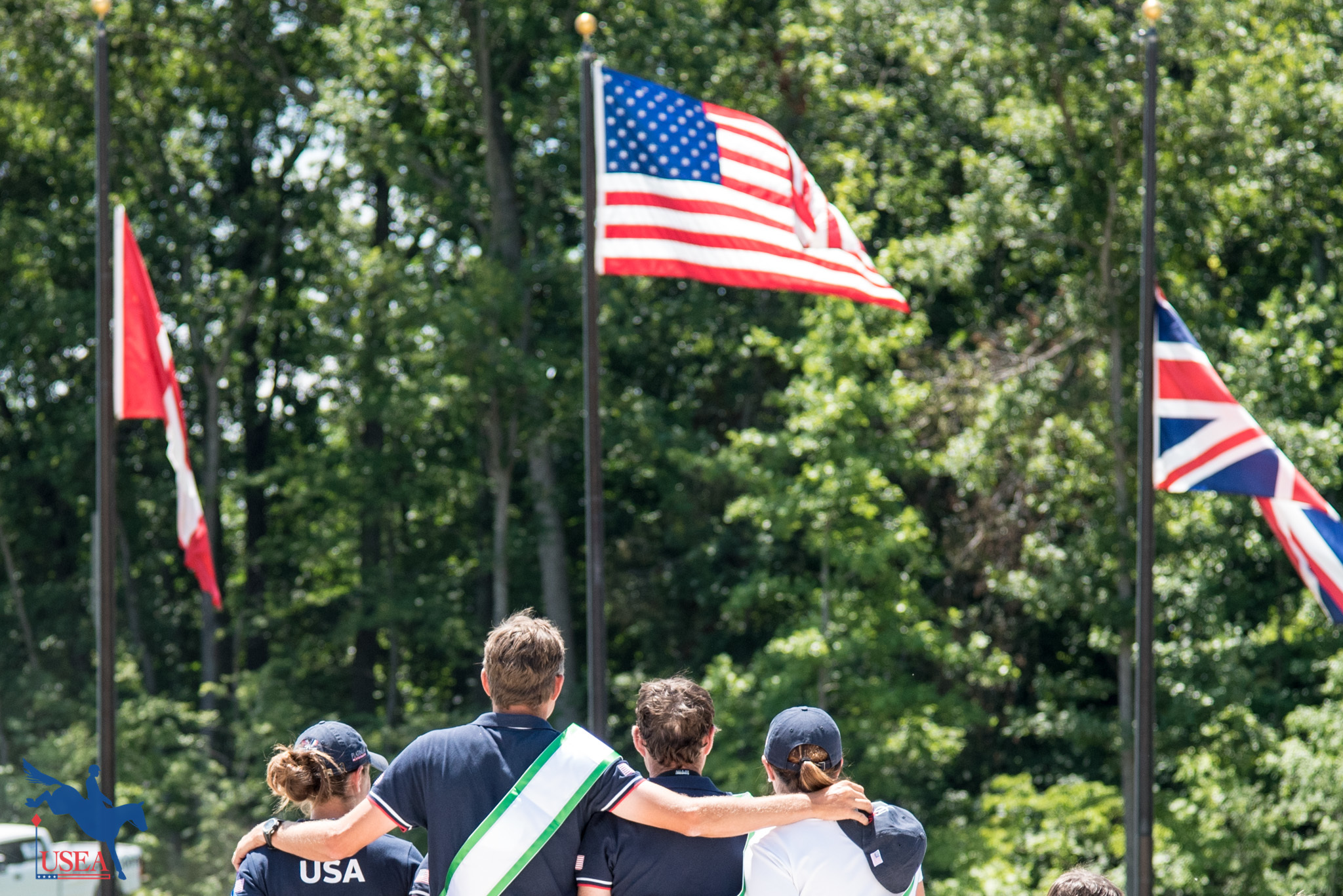 The U.S. team comes together during the playing of the National Anthem. USEA/Leslie Mintz Photo.