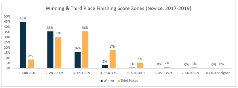 - Most Novice third-place finishers (66%) score between 28 and 36.