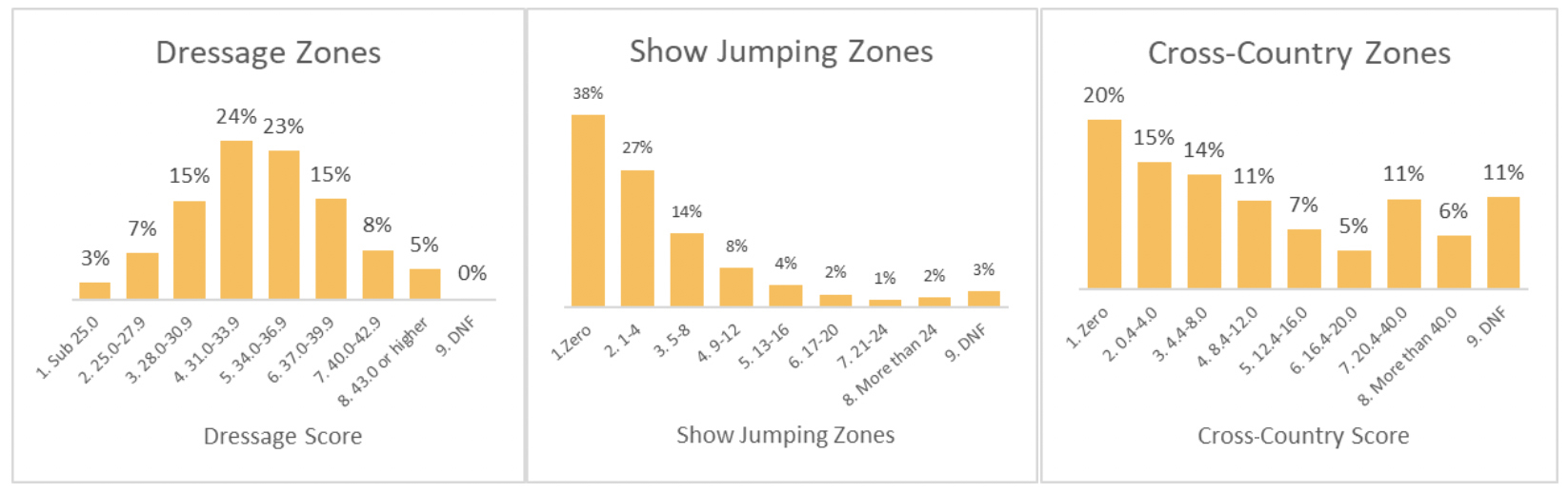 - Only about 2% of eventual competition winners come from more than 10 marks behind the dressage leader.