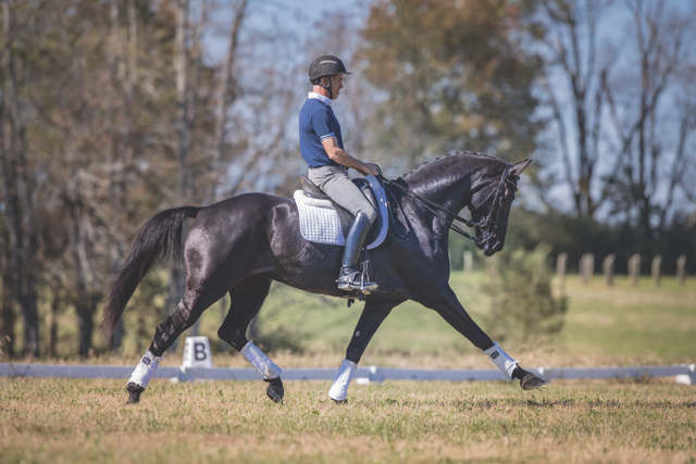 The forward press into the hand is as vital and obligatory to riding as treading water is to swimming. To accomplish this, the rider must maintain a firm core while allowing her legs to drape against the horse’s side. You must maintain the horse’s energy and connection through your seat, legs, and hands. If you allow your position to deteriorate, the energy will dissipate like air from a leaking balloon.