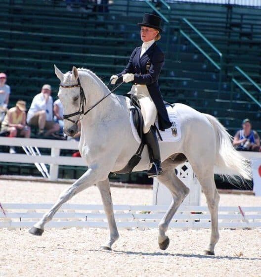 Bettina Hoy of Germany and her longtime partner Ringwood Cockatoo blew the competition away this afternoon after posting a stunning 28.8 to take the lead in the Rolex Kentucky CCI4* in Lexington, KY.