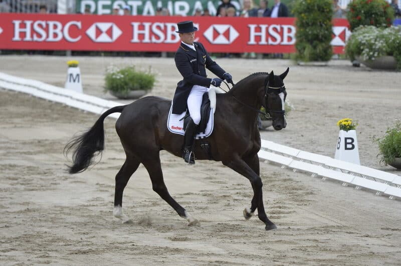 Halunke, a magnificent dark bay by Heraldik, is a superior mover to Jung’s Olympic, World and European Champion La Biosthetique Sam and is remarkably well established for a nine-year-old. In Jung’s sympathetic hands the gelding exuded quality, lightness and correctness in a test that was full of contrast.