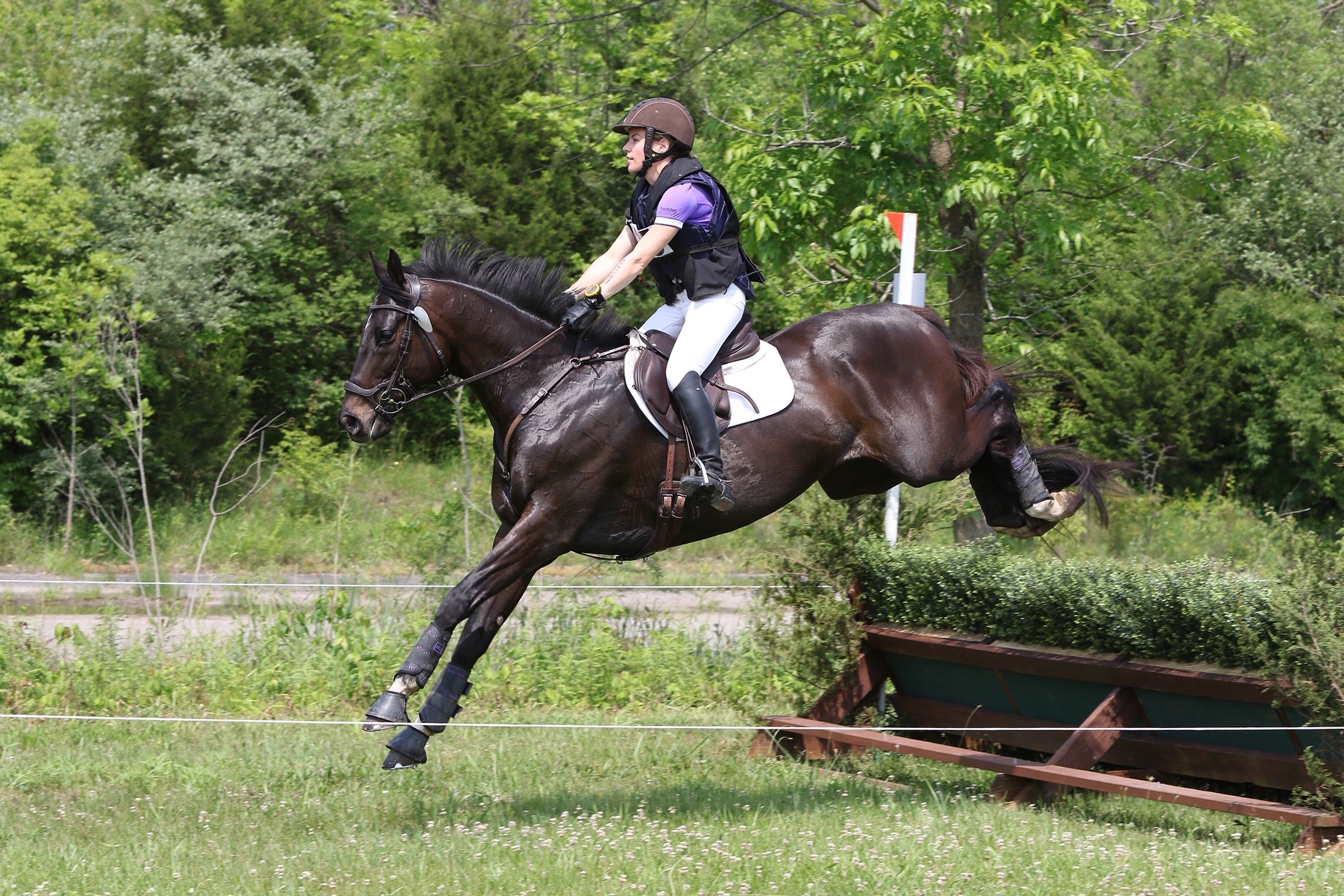 Having competed in the Novice Three-Day two years ago on a previous horse, Charette knew the positive effect that endurance day can have on a horse’s cross-country performance and hoped that it would do the same for Van. “My trainer and I did hesitate to enter Van in the Novice Three-Day at first because one of the biggest issues holding me back from a Training upgrade with him was his rideability galloping on cross-country,” Charette admitted. “He can get very fast and run through the bridle. However, we also felt that phase A-C prior to cross-country could be a good way for him to get his initial tension out and prepare him well for cross-country. The latter proved to be true. I had so much fun on steeplechase, never felt out of control, and Van was the most rideable he’s ever been on cross-country, putting in a beautiful, very bold round. I am now feeling confident about an upgrade to Training level.”