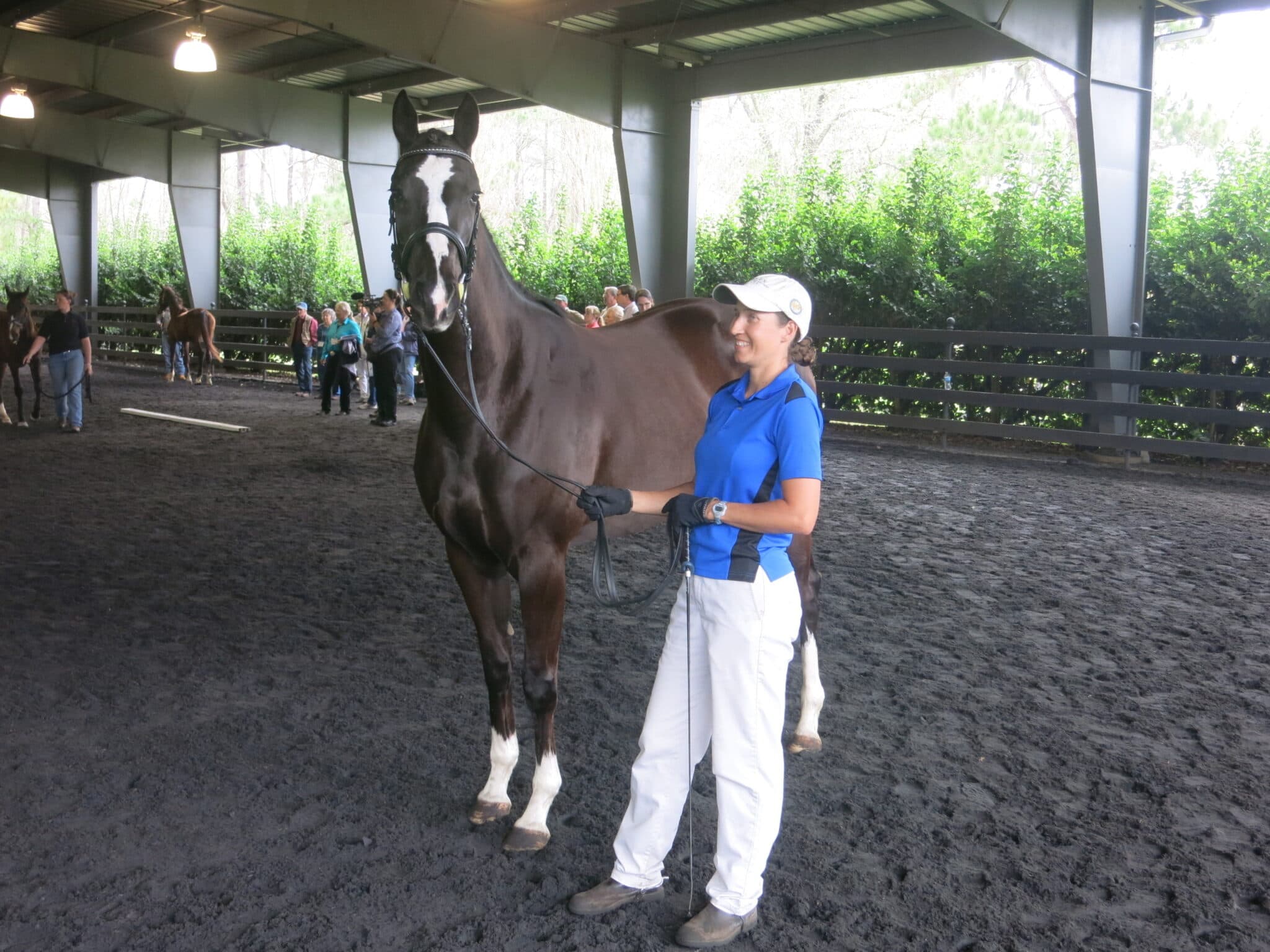 Among those experts was Dr. Maren Engelhardt, a prominent breeder and writer who had traveled from Germany to lend her expertise to the discussion. Dr. Englehardt discussed some of the differences she sees in comparing the German system of identification of young event horses and the relatively new American system. The German system judges young horses in much the same way as a normal horse trials, whereas the American system “tries to look beyond the competition itself and project which horse will mature” into a four star competitive mount. The American program also includes conformational analysis, which is absent from the German program.