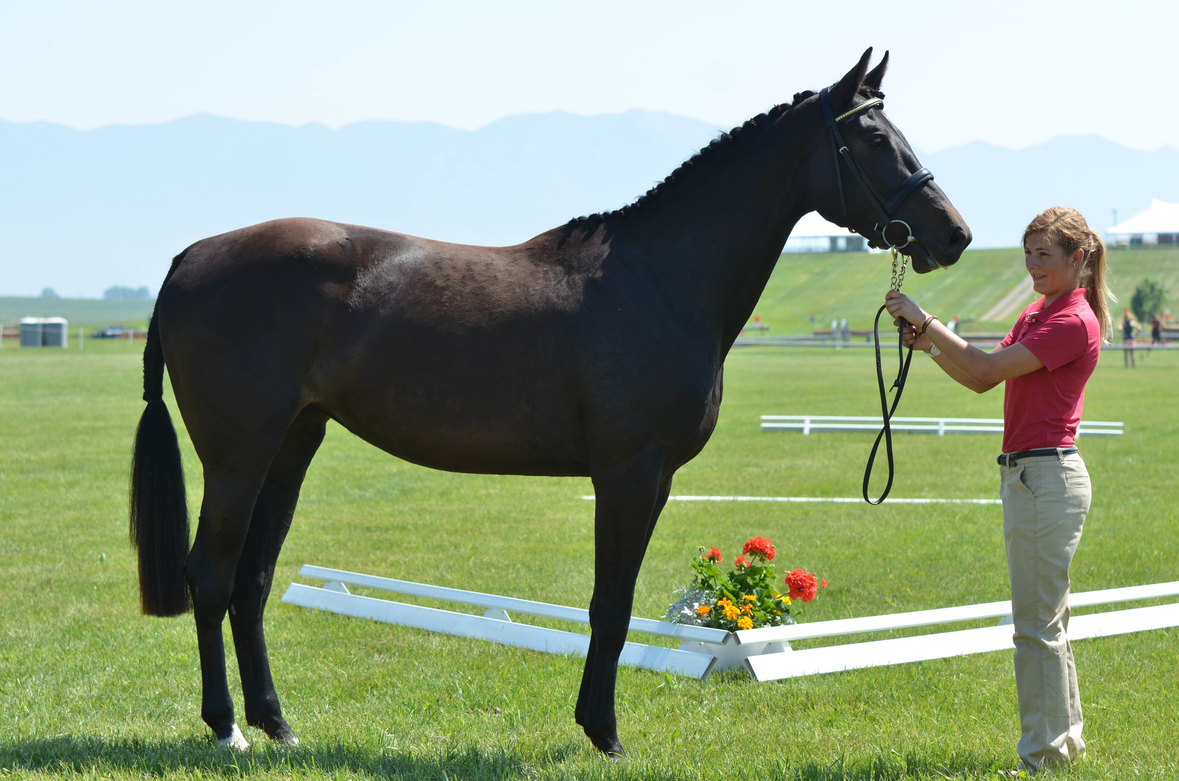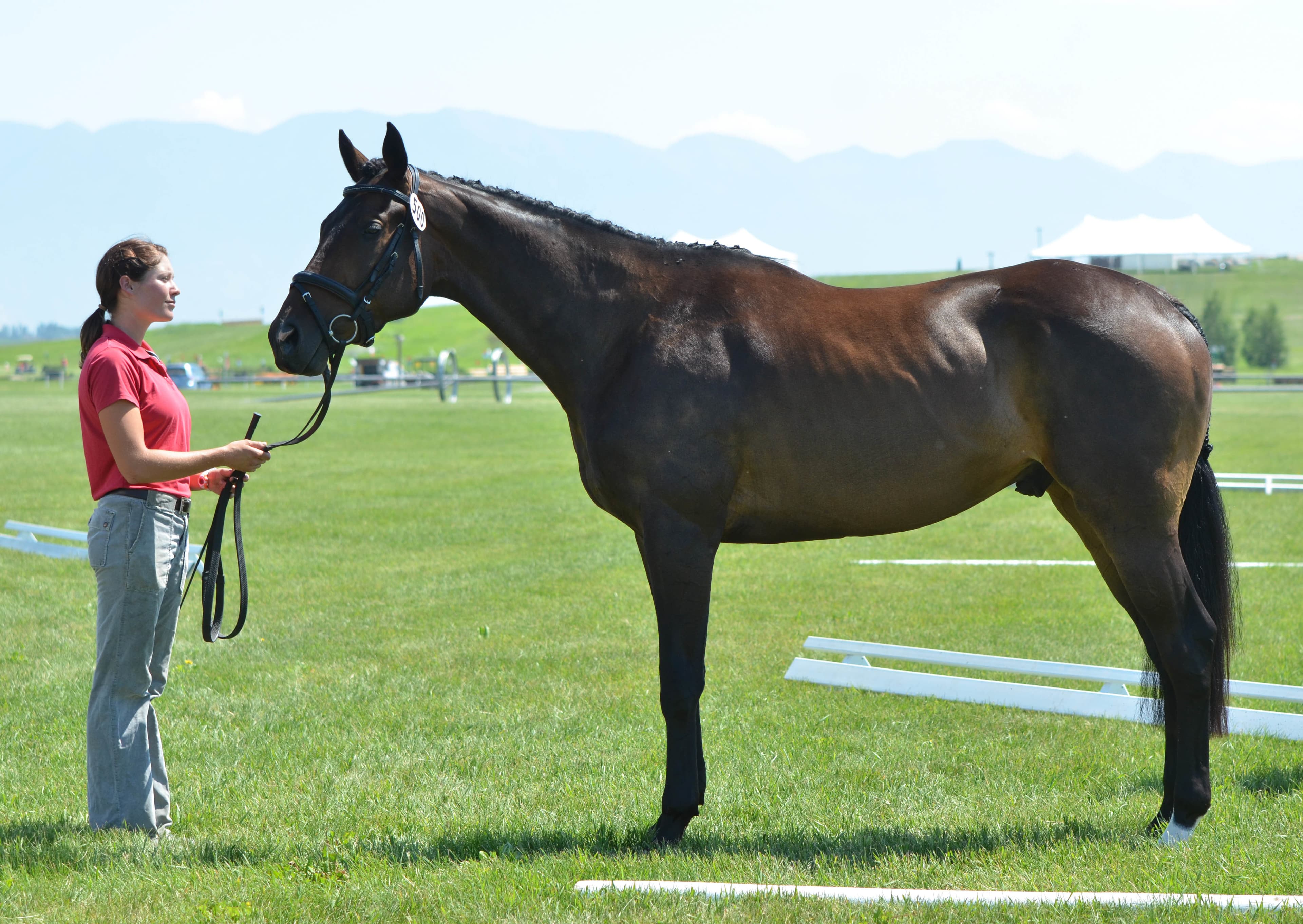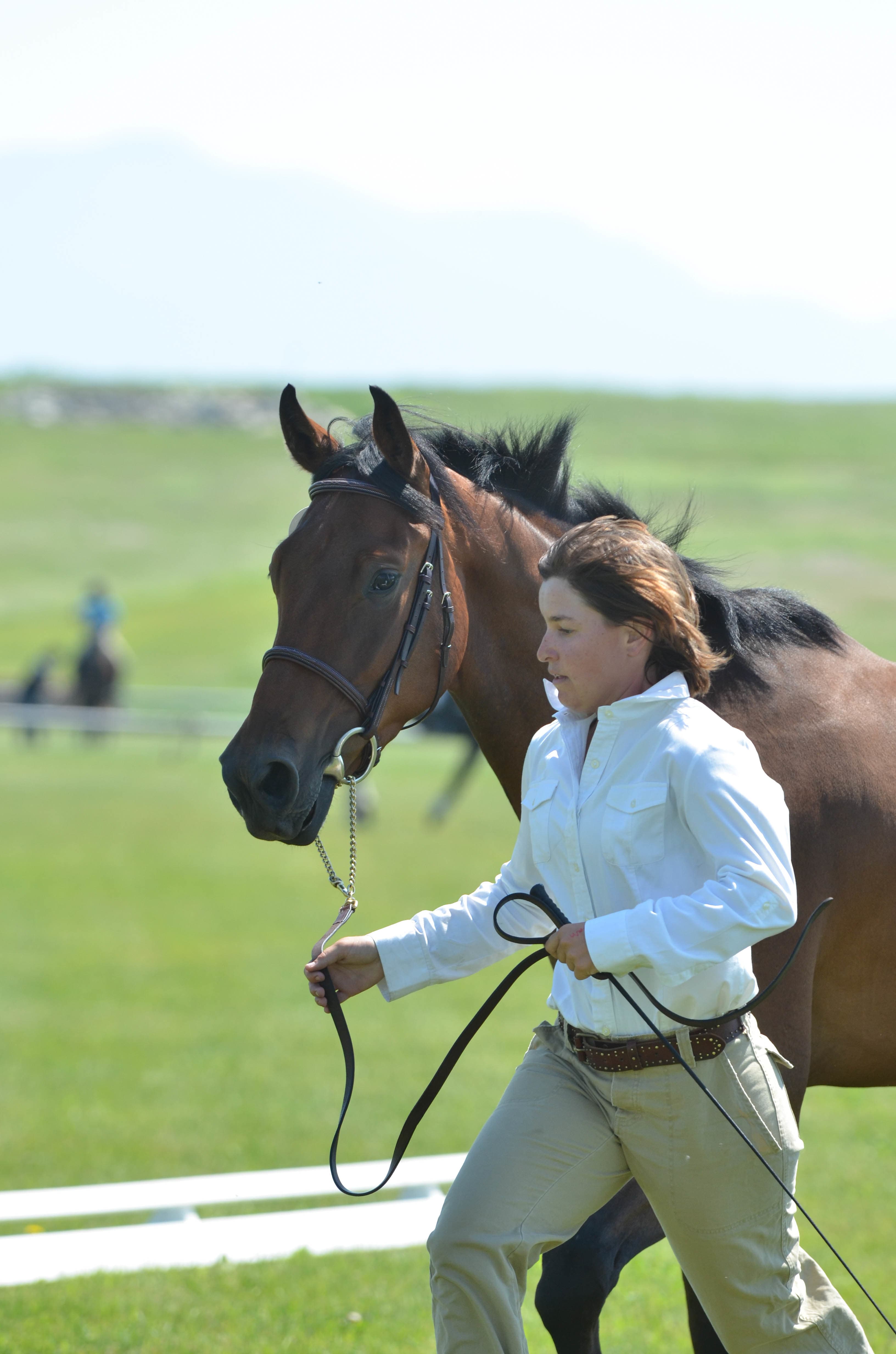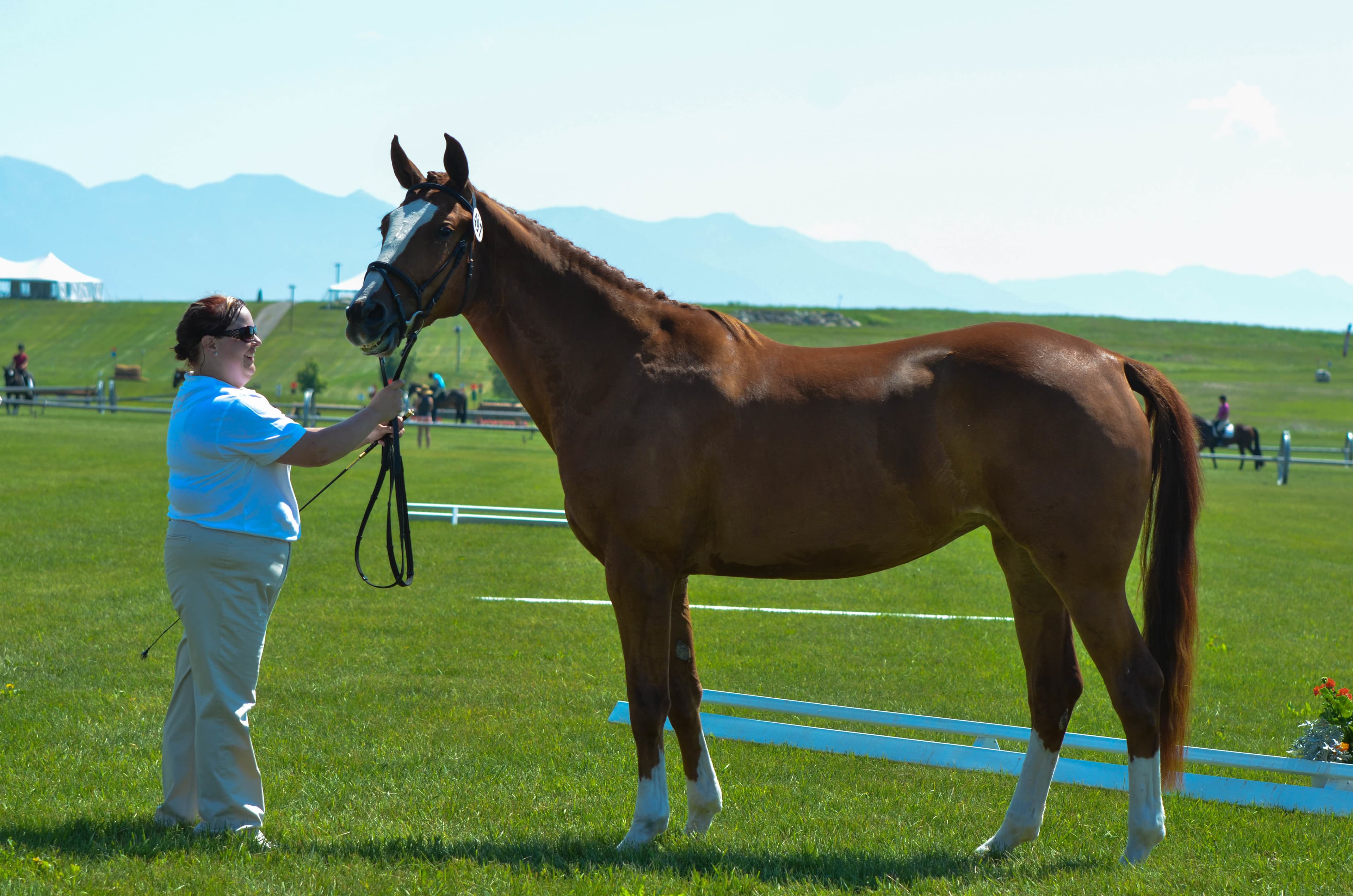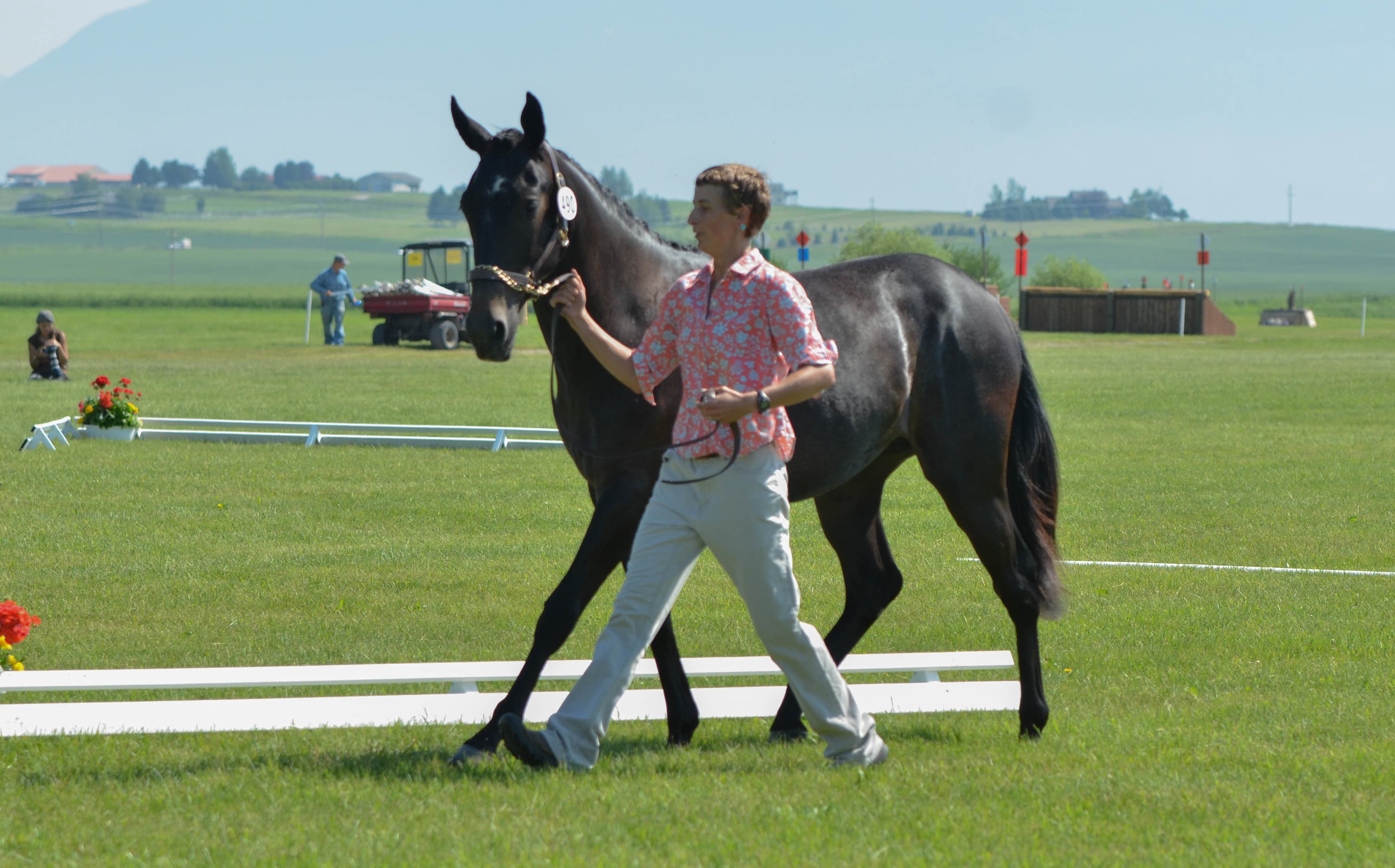 The three-year-olds were impressive and looked ready to run in the horse trials. Each one was beautifully turned out and was a real credit to the owners. Heading the class was Rollando handled by Alessandra Allen-Shinn of Billings, Montana. Rollando scored a 76.1 and was closely followed by Wood’s Bay owned by Jil Walton and Jill Jaeger. Handled by Florence Miller, Wood’s Bay is a Thoroughbred sired by Full Bridled out of Most Awesome and earned 74.6 from the judges. Jil Walton also co-owns the third placed horse Bella Coola (73.1) with Jill Jaeger and Bet Wise. Bella Coola is by the Argentinian Show Jumping Stallion Quinar, a Holsteiner. He is the result of an embryo transfer as his dam, Gamma Cantabrica, is a very busy career mare on the Argentinian Grand Prix. In fourth was Gotta Feeling (73.0), a registered international sport horse owned by Catie Cejka of Washougal, Washington. Gotta Feeling’s sire is the Hanoverian stallion Gatsby OL and he is out of a Hanoverian cross mare, Garbo. The class was rounded out by Keilah Broduil and Irish Sport Horse filly owned and handled by Rhiannon Gallacher of Missoula, Montana. Keilah Broduil’s sire was Huntingfield Proud Tim and her dam was Jasmine, a TB cross. She scored a 64.4 from the judges.