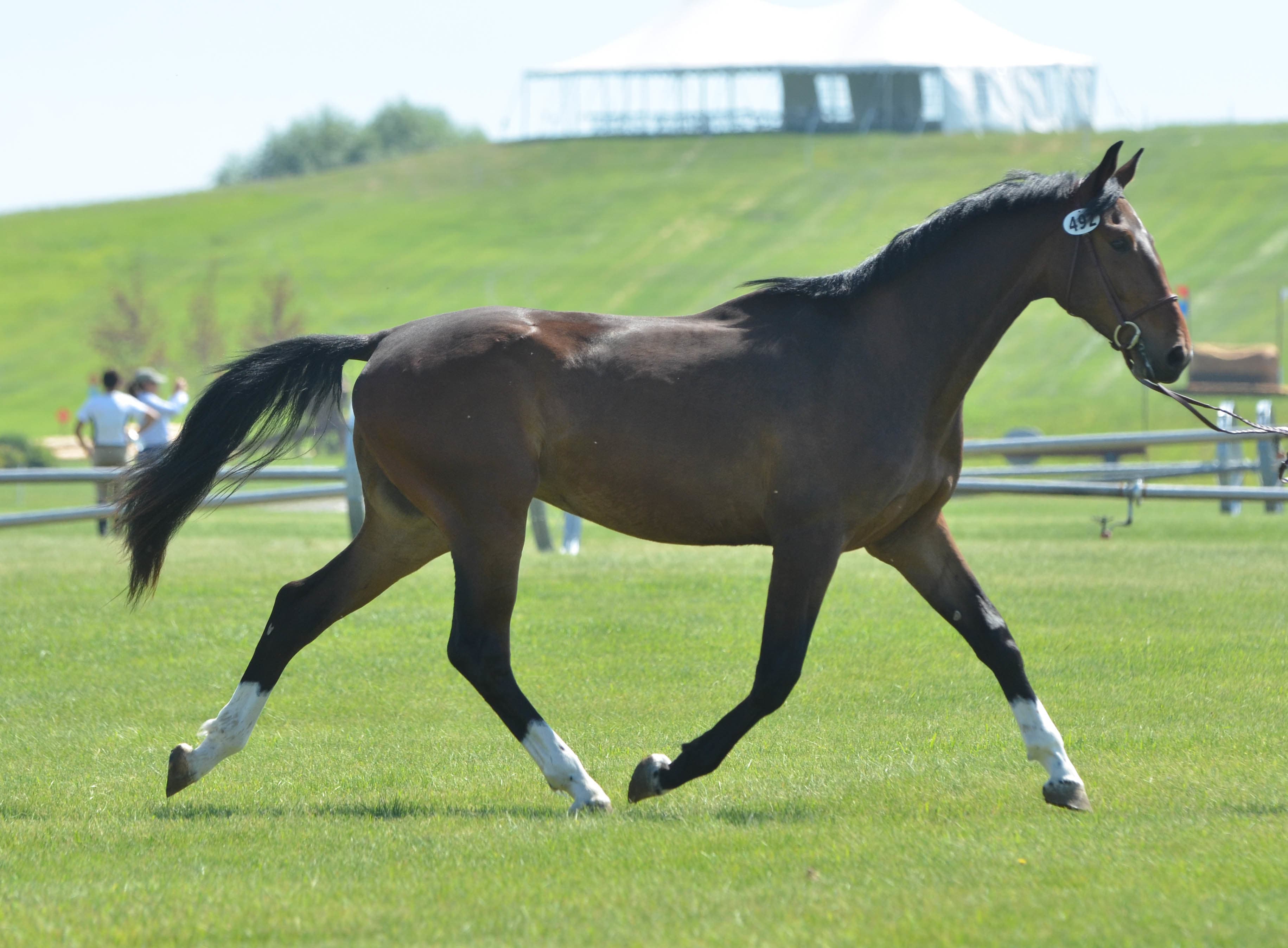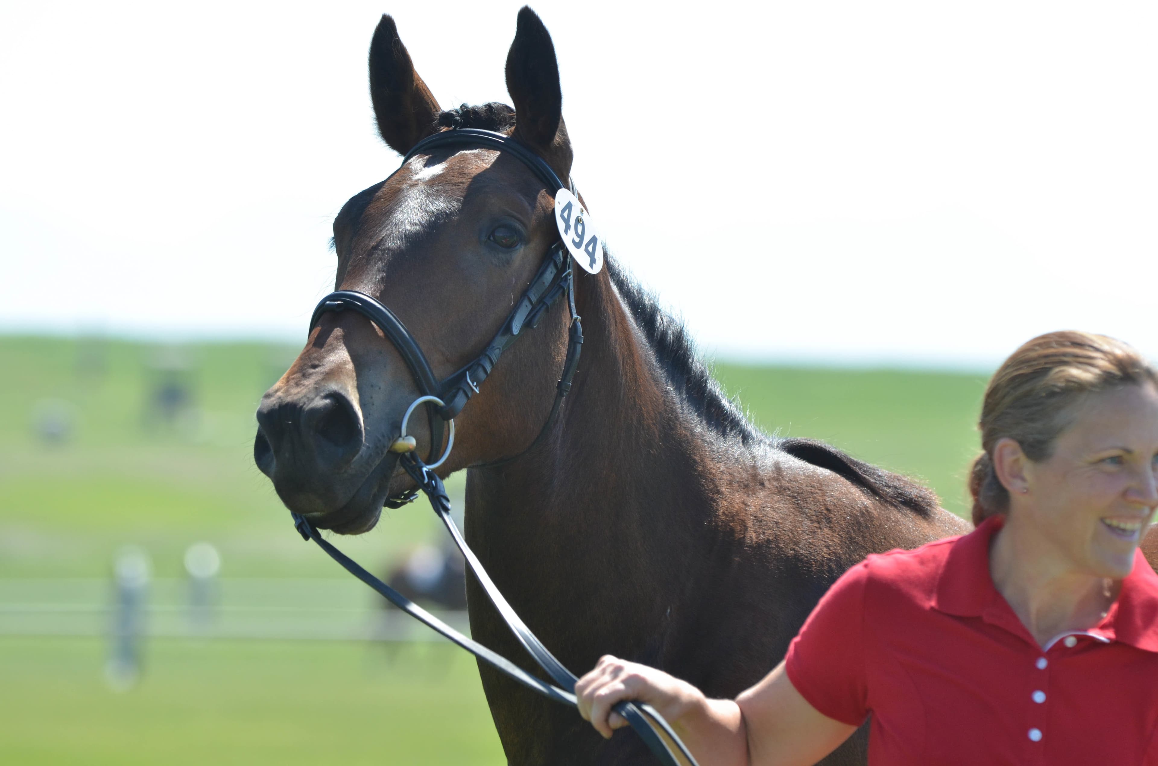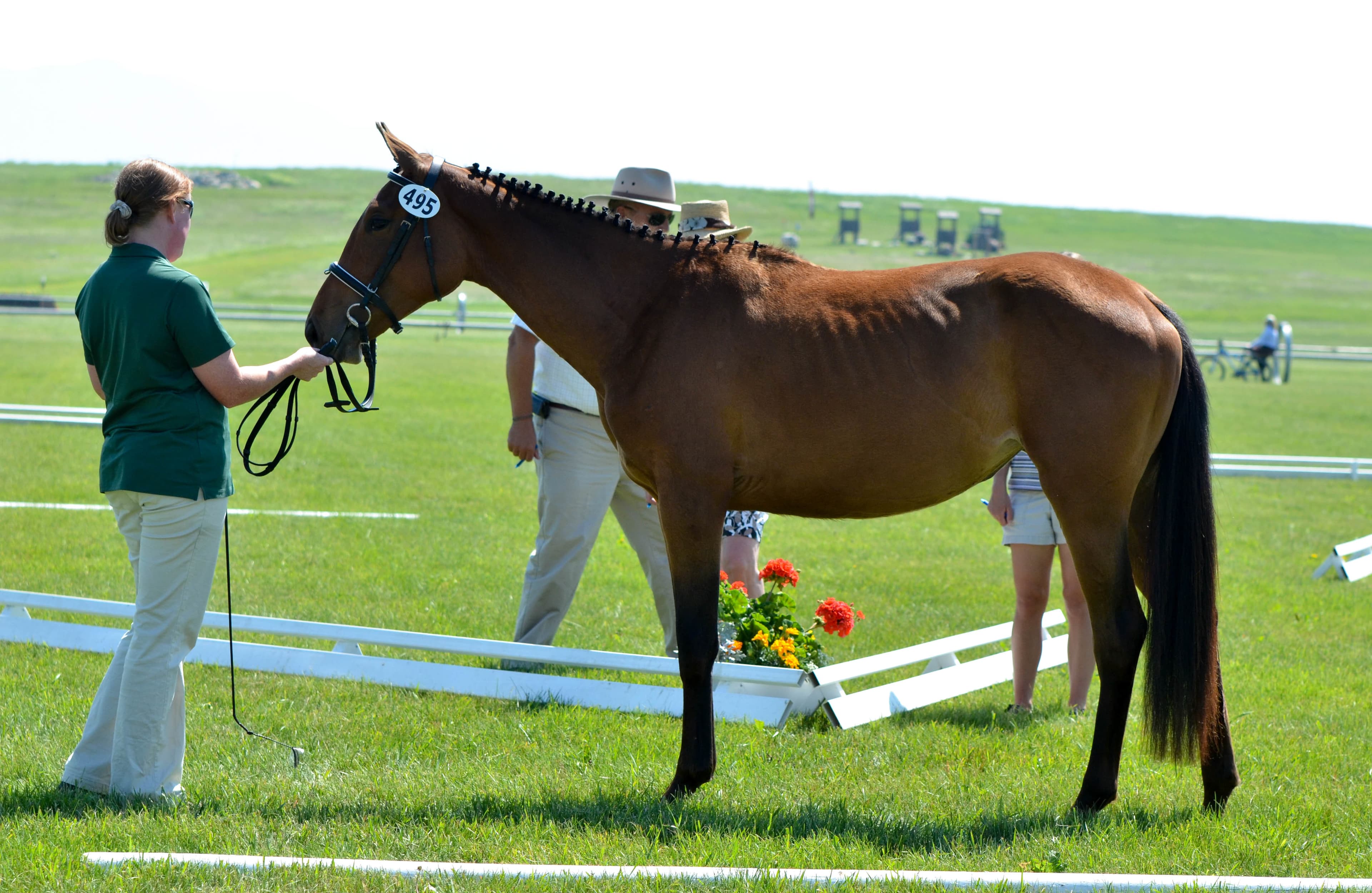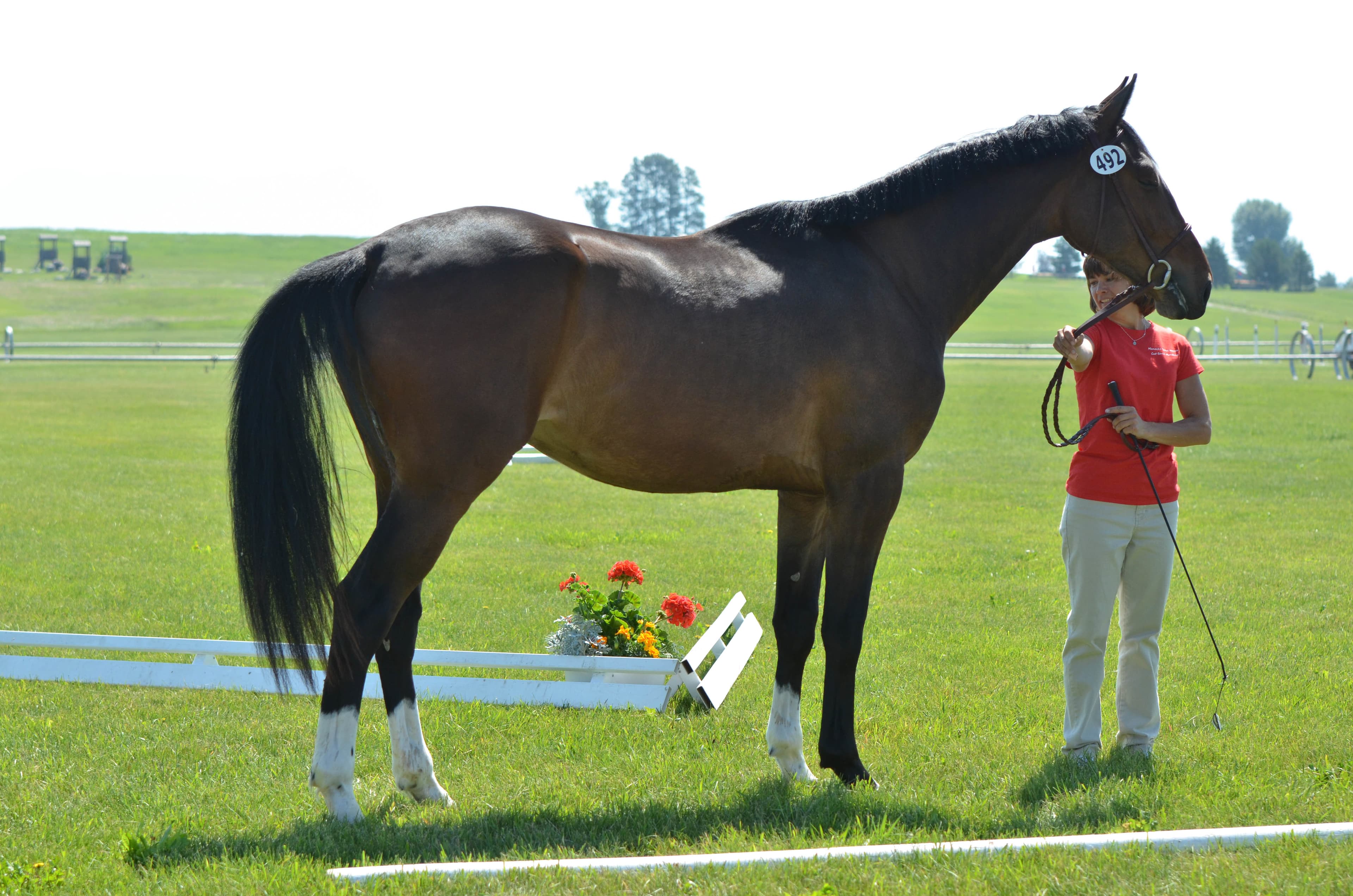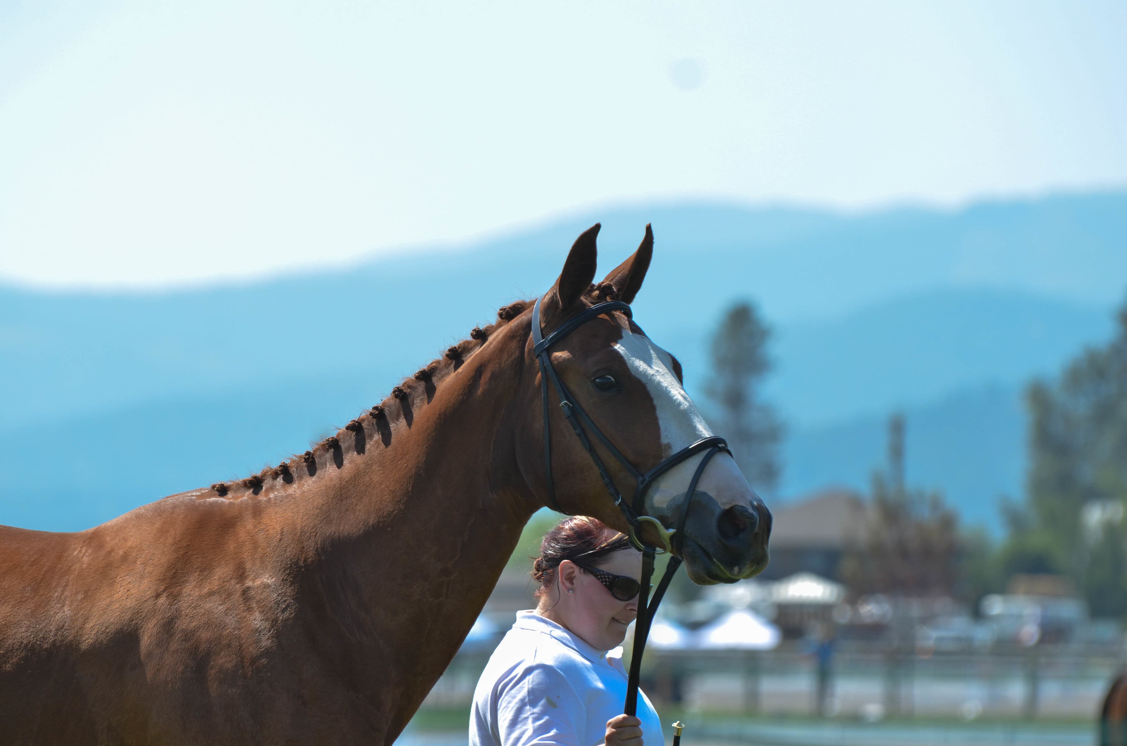 The three-year-olds were impressive and looked ready to run in the horse trials. Each one was beautifully turned out and was a real credit to the owners. Heading the class was Rollando handled by Alessandra Allen-Shinn of Billings, Montana. Rollando scored a 76.1 and was closely followed by Wood’s Bay owned by Jil Walton and Jill Jaeger. Handled by Florence Miller, Wood’s Bay is a Thoroughbred sired by Full Bridled out of Most Awesome and earned 74.6 from the judges. Jil Walton also co-owns the third placed horse Bella Coola (73.1) with Jill Jaeger and Bet Wise. Bella Coola is by the Argentinian Show Jumping Stallion Quinar, a Holsteiner. He is the result of an embryo transfer as his dam, Gamma Cantabrica, is a very busy career mare on the Argentinian Grand Prix. In fourth was Gotta Feeling (73.0), a registered international sport horse owned by Catie Cejka of Washougal, Washington. Gotta Feeling’s sire is the Hanoverian stallion Gatsby OL and he is out of a Hanoverian cross mare, Garbo. The class was rounded out by Keilah Broduil and Irish Sport Horse filly owned and handled by Rhiannon Gallacher of Missoula, Montana. Keilah Broduil’s sire was Huntingfield Proud Tim and her dam was Jasmine, a TB cross. She scored a 64.4 from the judges.
