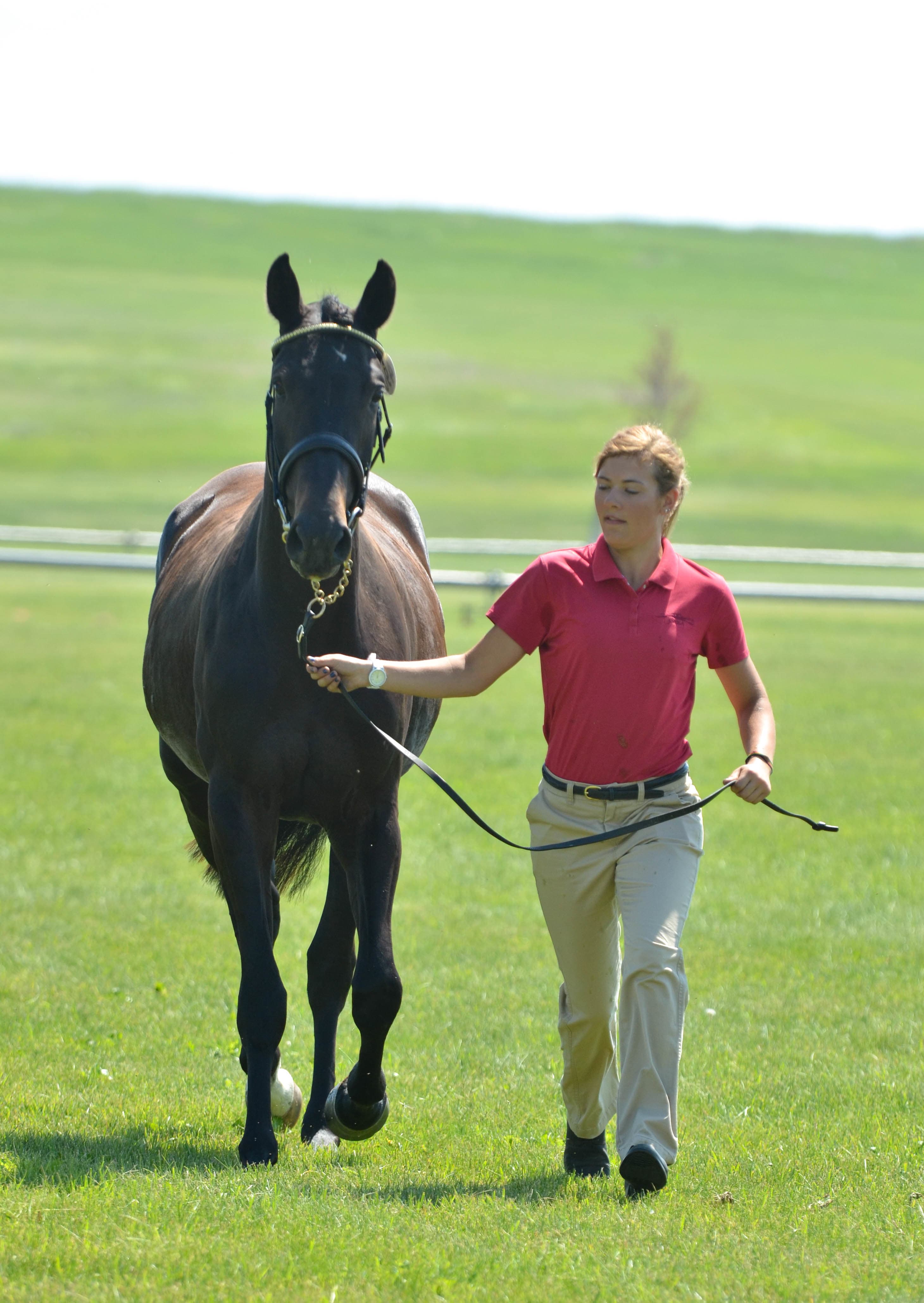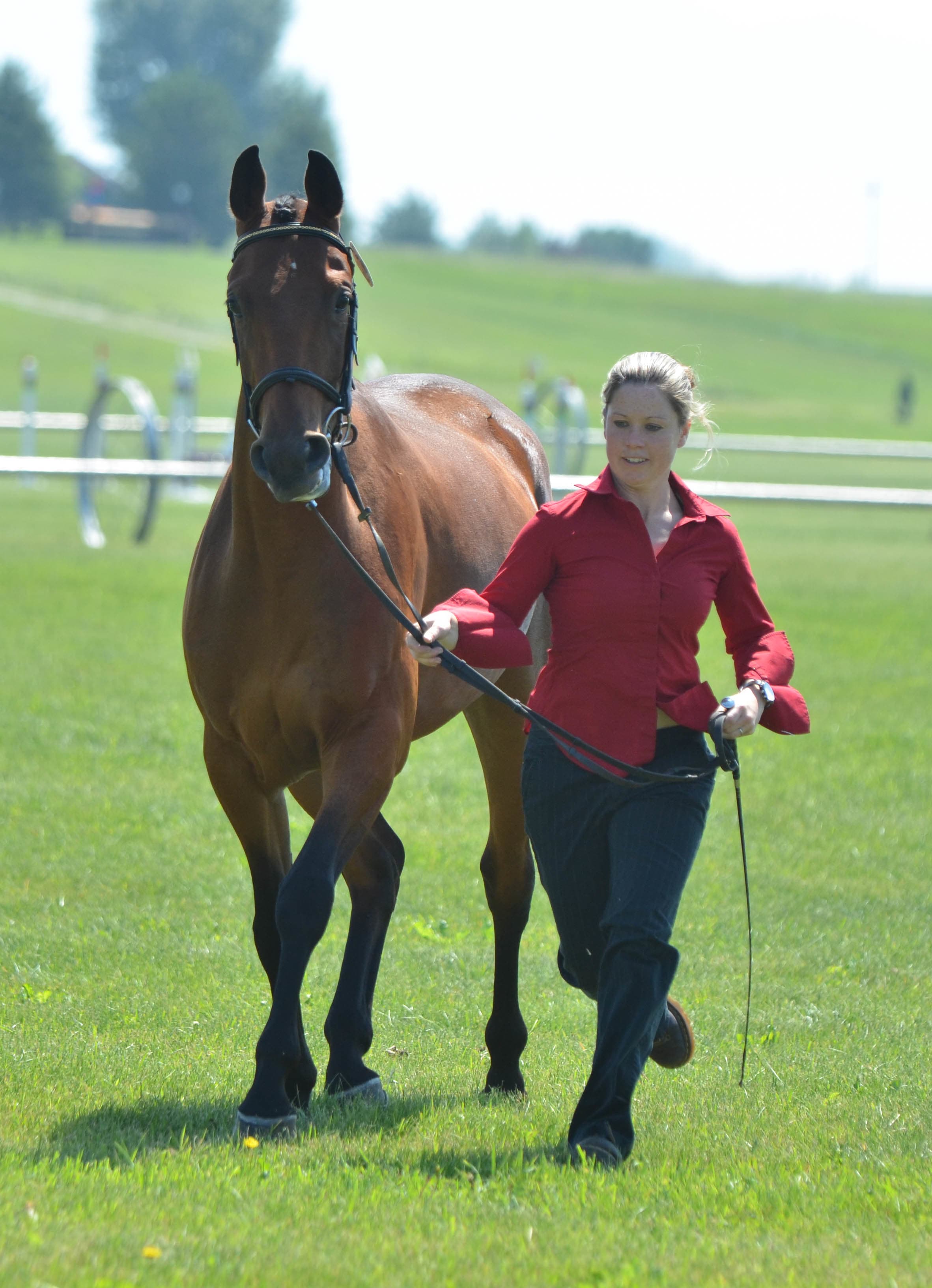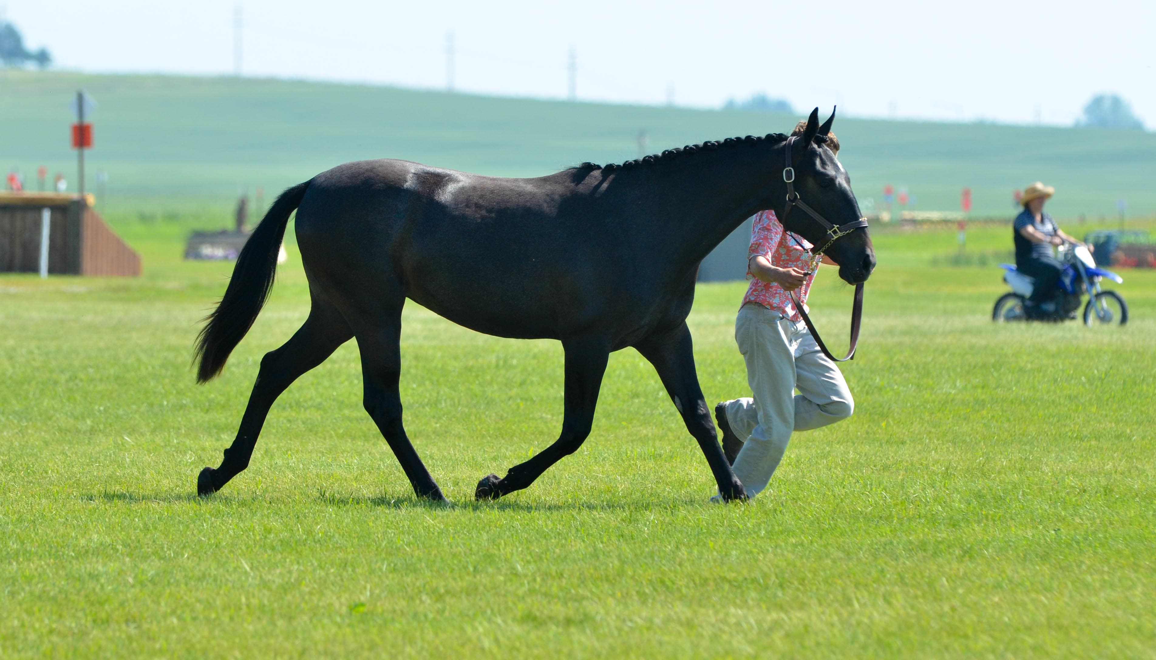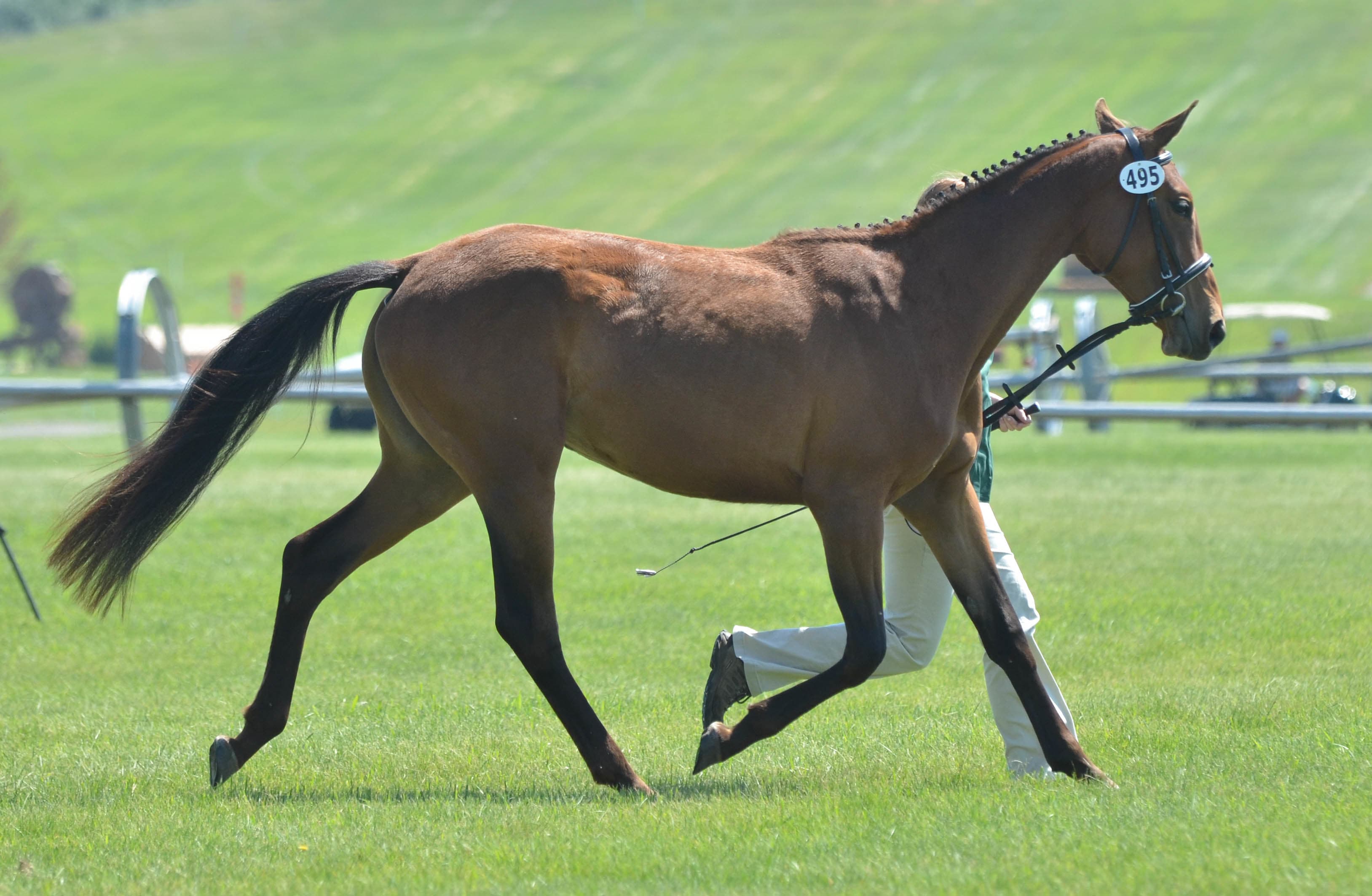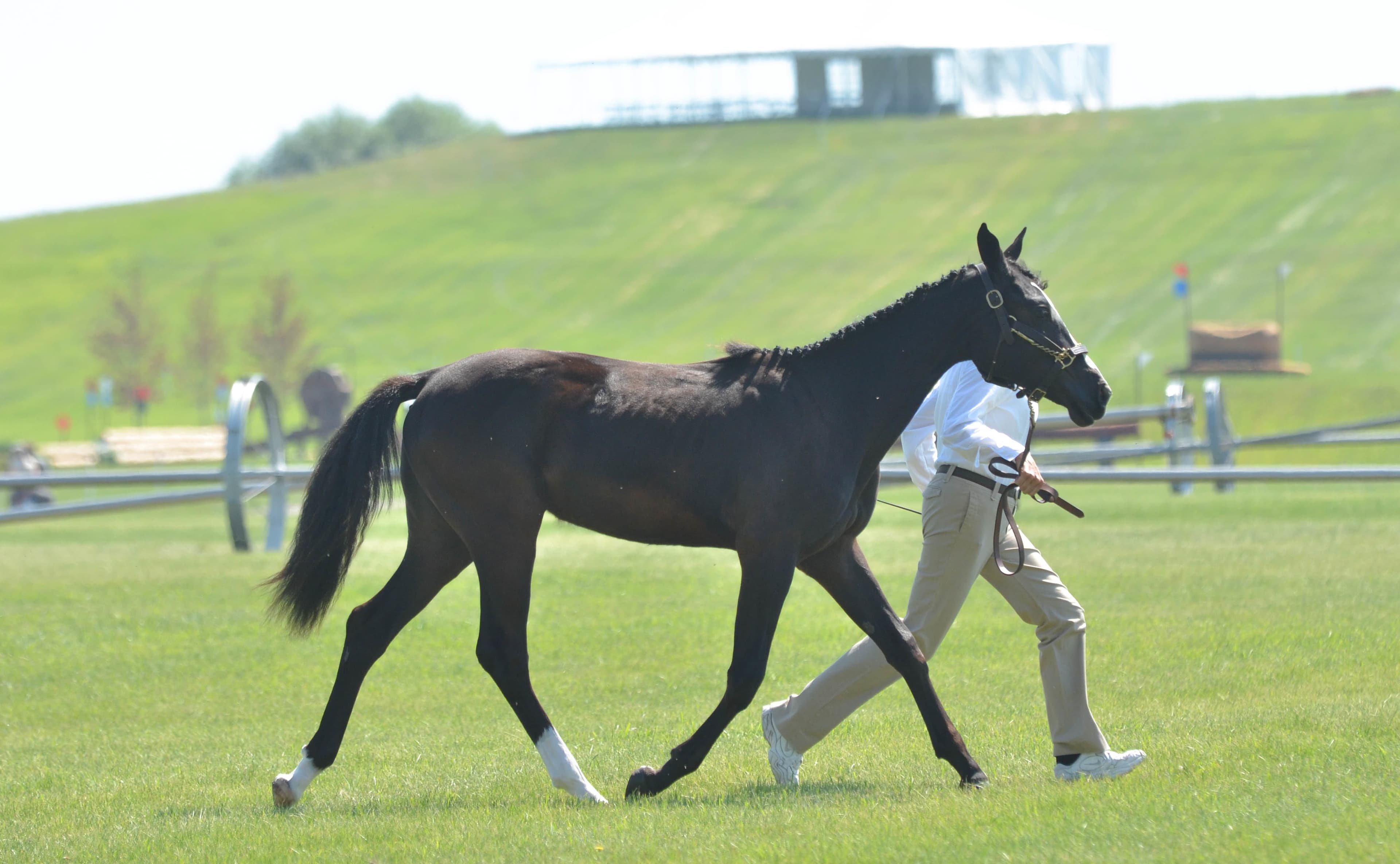 The three-year-olds were impressive and looked ready to run in the horse trials. Each one was beautifully turned out and was a real credit to the owners. Heading the class was Rollando handled by Alessandra Allen-Shinn of Billings, Montana. Rollando scored a 76.1 and was closely followed by Wood’s Bay owned by Jil Walton and Jill Jaeger. Handled by Florence Miller, Wood’s Bay is a Thoroughbred sired by Full Bridled out of Most Awesome and earned 74.6 from the judges. Jil Walton also co-owns the third placed horse Bella Coola (73.1) with Jill Jaeger and Bet Wise. Bella Coola is by the Argentinian Show Jumping Stallion Quinar, a Holsteiner. He is the result of an embryo transfer as his dam, Gamma Cantabrica, is a very busy career mare on the Argentinian Grand Prix. In fourth was Gotta Feeling (73.0), a registered international sport horse owned by Catie Cejka of Washougal, Washington. Gotta Feeling’s sire is the Hanoverian stallion Gatsby OL and he is out of a Hanoverian cross mare, Garbo. The class was rounded out by Keilah Broduil and Irish Sport Horse filly owned and handled by Rhiannon Gallacher of Missoula, Montana. Keilah Broduil’s sire was Huntingfield Proud Tim and her dam was Jasmine, a TB cross. She scored a 64.4 from the judges.