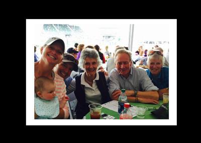 Philippa surrounded by family and friends. Photo courtesy of Metcalf & Jonkhoff Funeral Home.