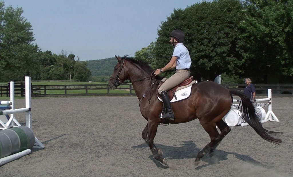 A balanced, engaged, and adjustable canter is necessary to quality jumping. What is added by allowing the horse a “place to be”? Think of the half-halt: during the allowing forward with the hands that concludes each half-halt, the horse demonstrates that he understands and will carry himself for at least a few steps in the new balance. Similarly, when the rider’s hands allow the horse a place to be in the engaged and balanced canter, the rider is inviting and accommodating that horse’s self-carriage at canter.