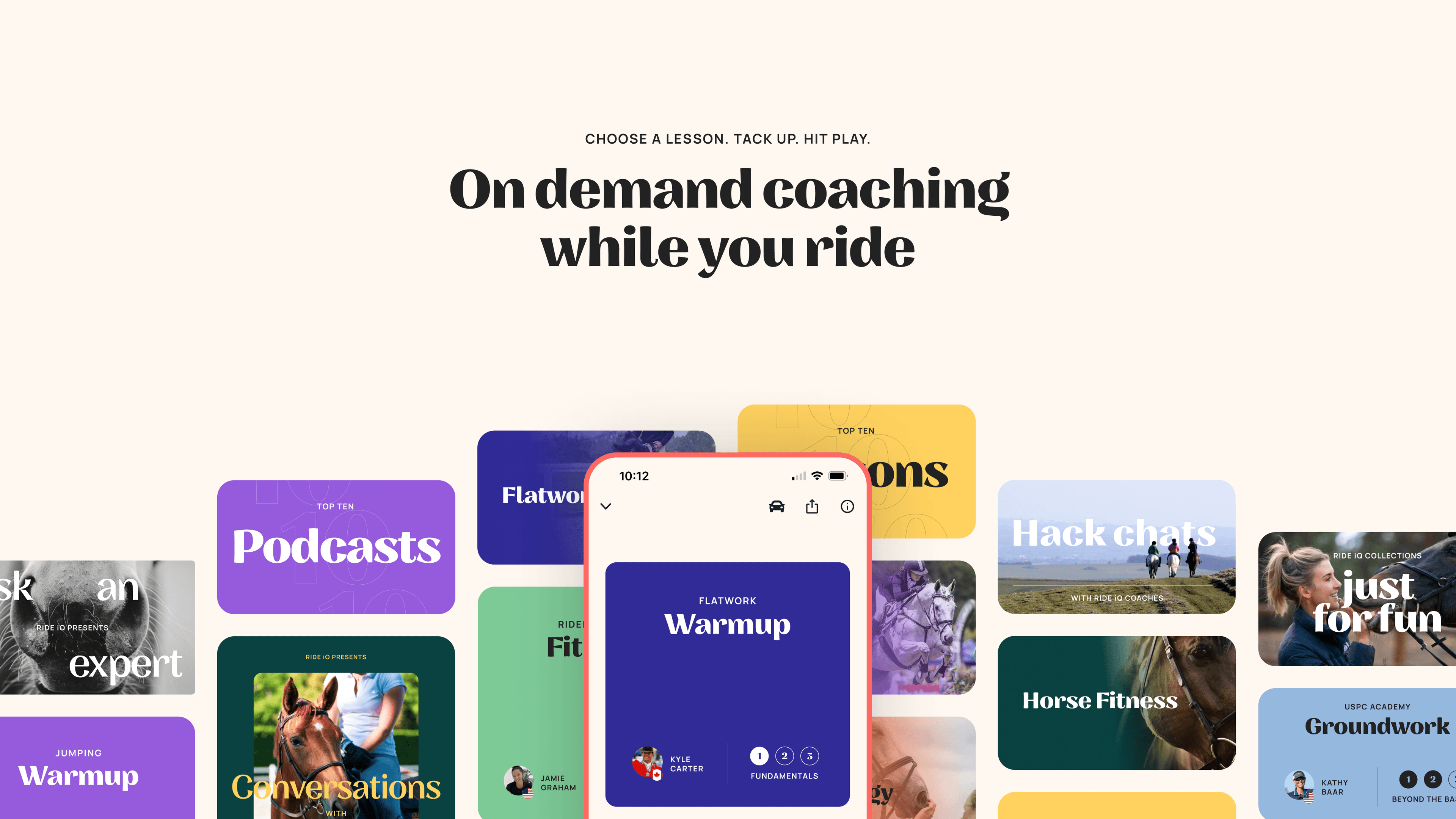 Imagine having a top coach in your ear while riding, anytime! Adult amateurs face unique challenges—busy schedules, tight budgets, and limited access to consistent training. That's where Ride iQ comes in. This user-friendly coaching app provides 24/7 access to top trainers through on-demand, listen-while-you-ride audio lessons tailored to your needs.